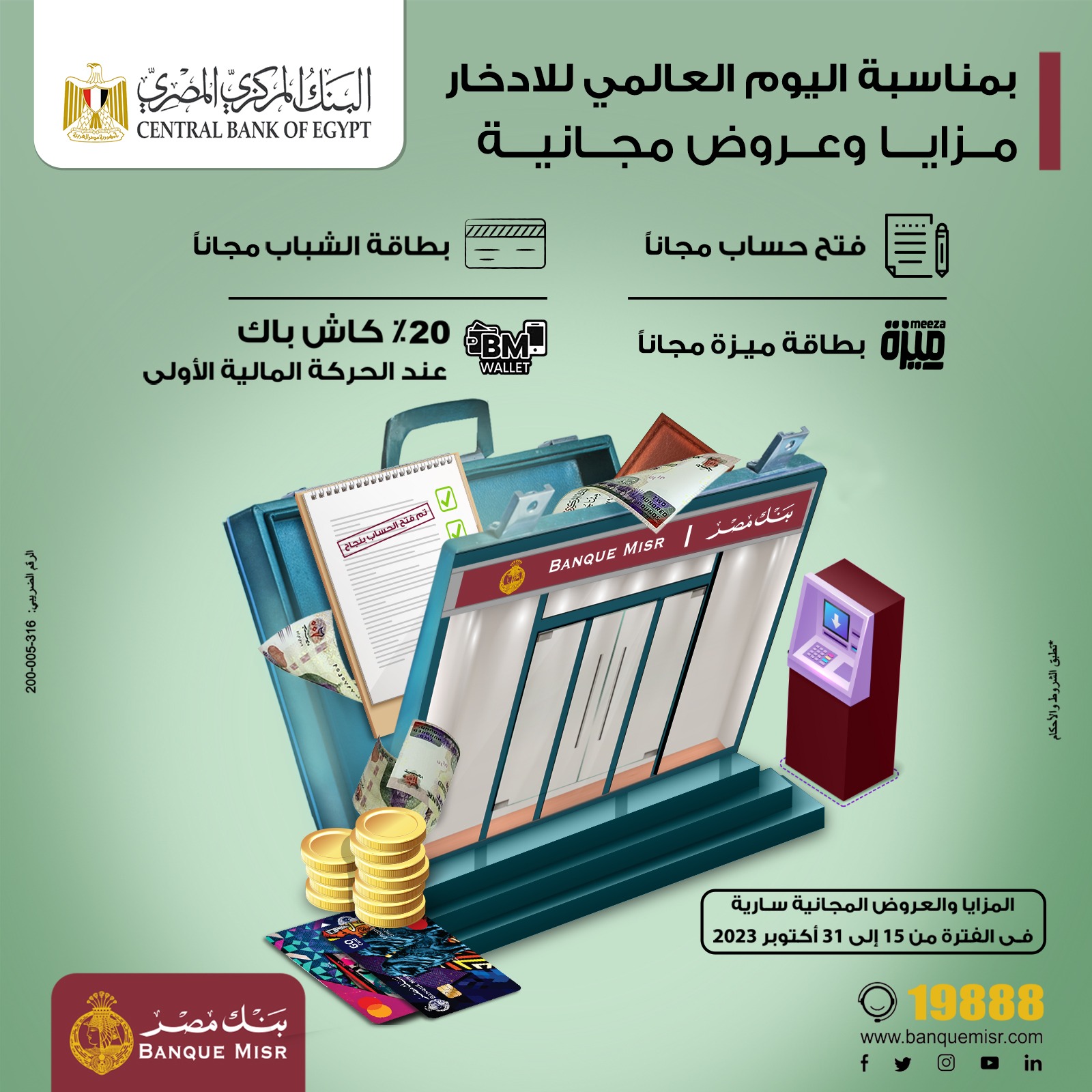 بنك مصر يقدم باقة متنوعة من المزايا والعروض المجانية بمناسبة اليوم العالمي للادخار