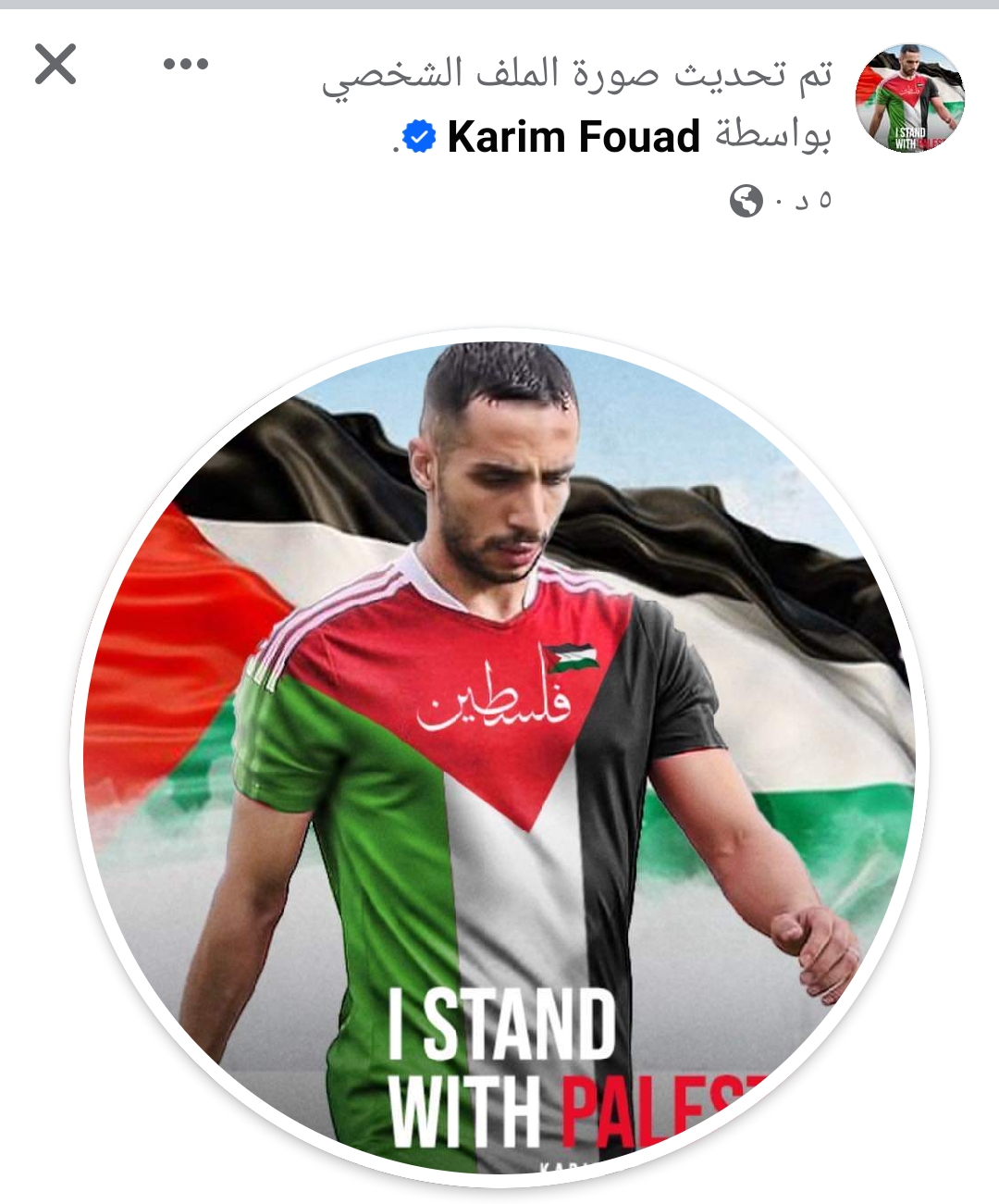 حرص كريم فؤاد لاعب النادي الأهلي علي دعم شعب فلسطين الشقيق وذلك بعد الأحداث التي تمر بها البلاد في الفترة الأخيرة من ضحايا وحوادث مريرة.