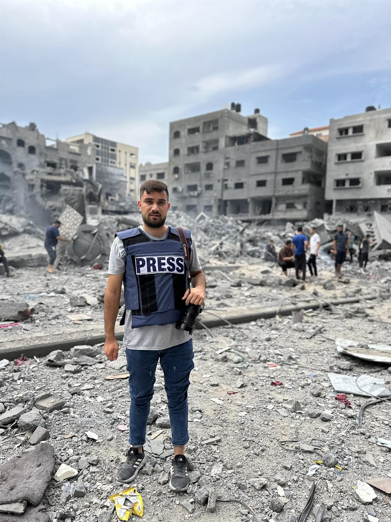 المصور الفلسطيني، تحدث عن واحد من المواقف اللحظية التى يتعرض لها، وقال: «للأسف اليوم أحد أقاربي كان في المكان الذي أسكن فيه، وأبلغني بقصف منزلي ومنازل الجيران جميعها، ولا أستطيع الوصول الى بيتي من كثر القصف والخطر الكبير».