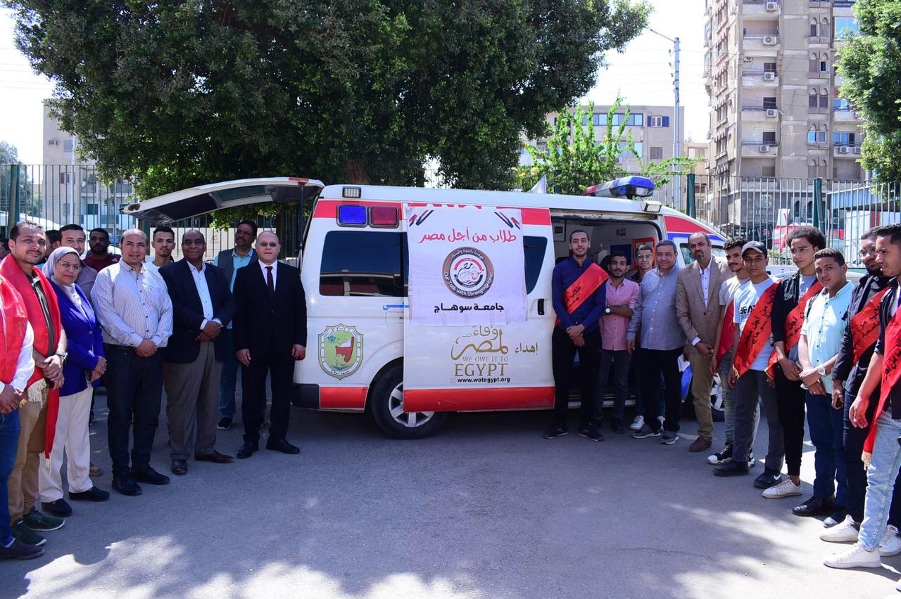 شهدت جامعة سوهاج اليوم انطلاق أكبر حملة للتبرع بالدم، تضامنًا مع الشعب الفلسطيني الشقيق، حيث كان الدكتور حسان النعماني رئيس الجامعة أول المتبرعين بالحملة، والتي جاءت تنفيذًا لتوجيهات فخامة الرئيس عبد الفتاح السيسي رئيس الجمهورية لدعم الشعب الفلسطيني وتقديم المساعدة والمساندة له.