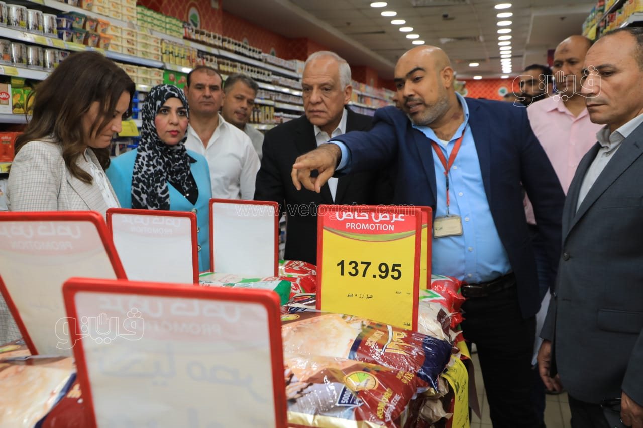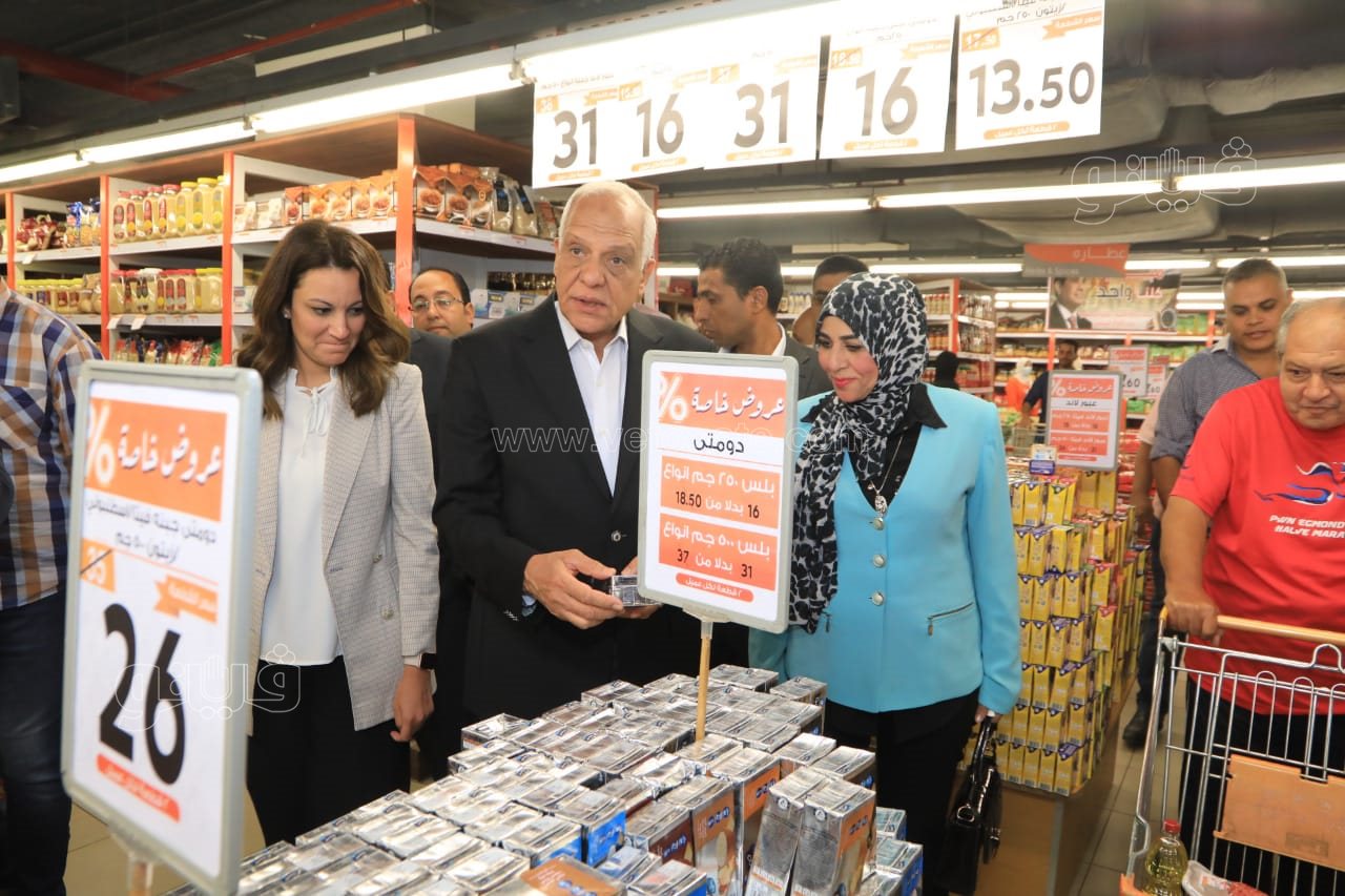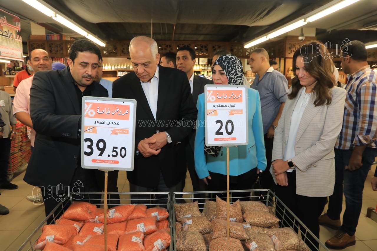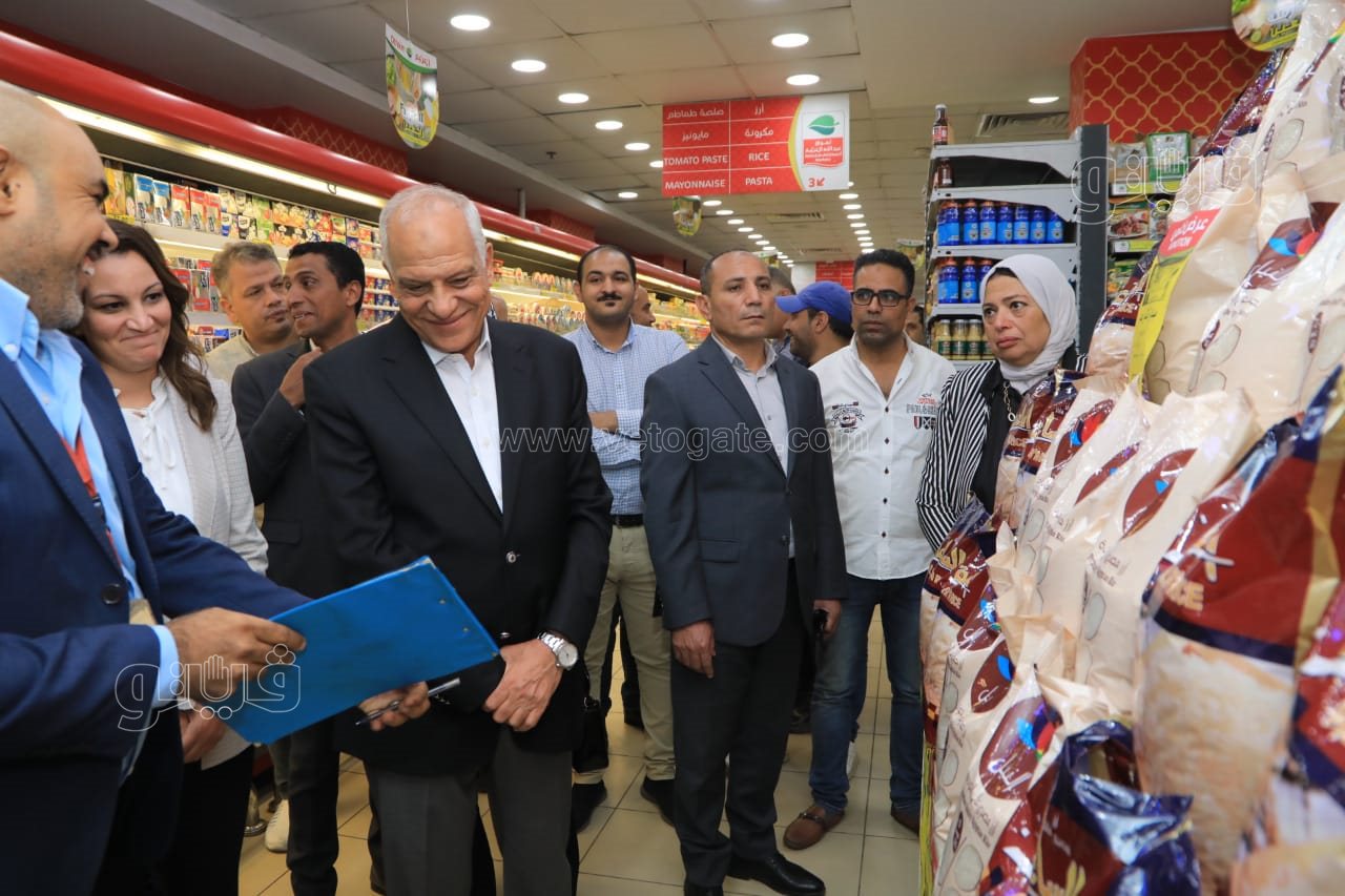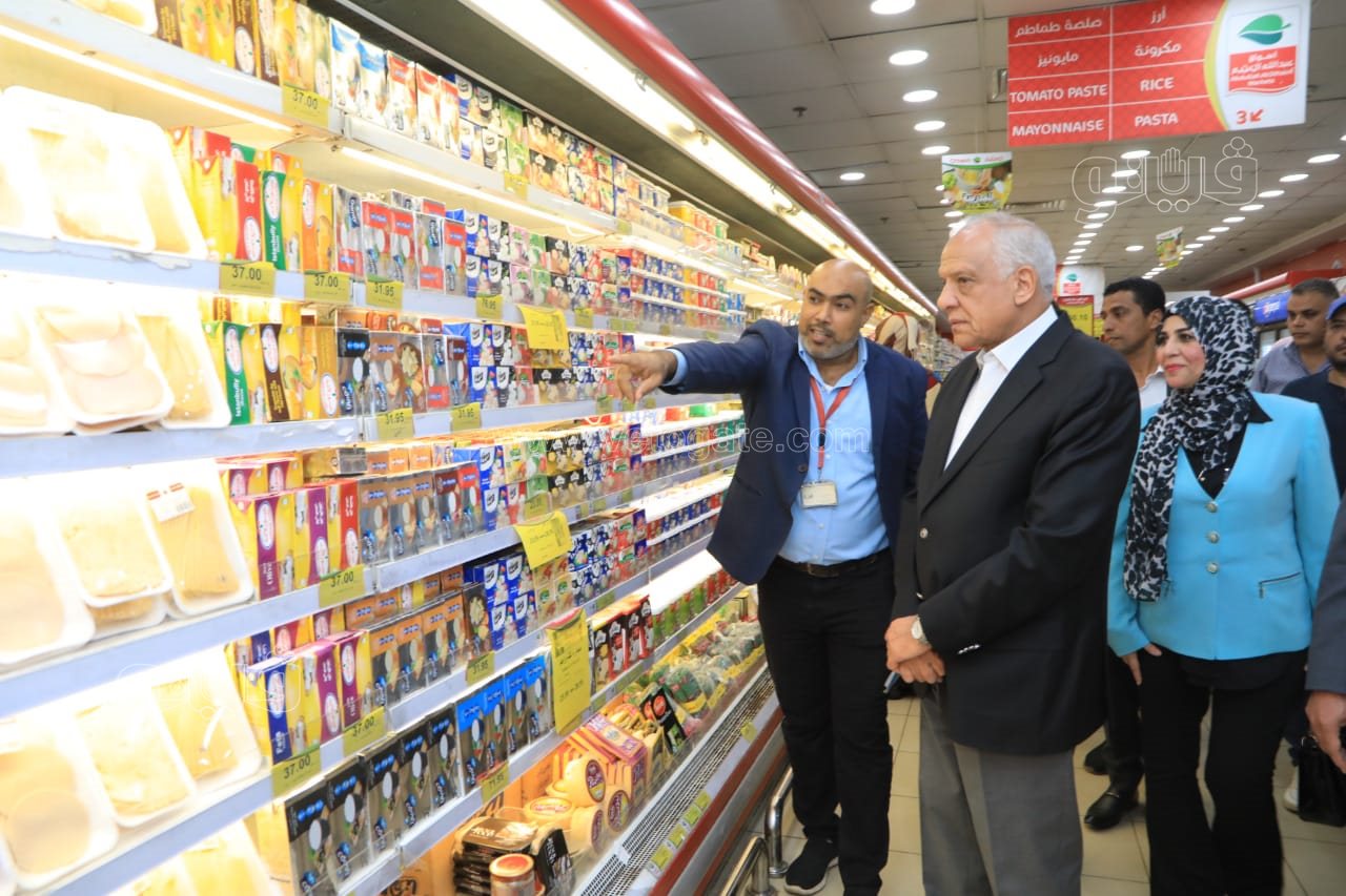 محافظ الجيزة يتفقد السلاسل التجارية بالطالبية والهرم والعجوزة لمتابعه مبادرة تخفيض اسعار السلع