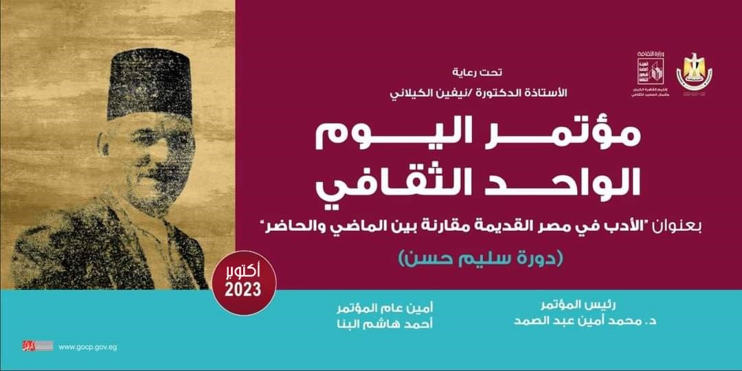 تقيم الهيئة العامة لقصور الثقافة برئاسة عمرو البسيوني، مؤتمر اليوم الواحد لفرع ثقافة القاهرة يوم الخميس المقبل الموافق 19 أكتوبر الحالي، بقصر ثقافة روض الفرج، بعنوان "الأدب في مصر القديمة مقارنة بين الماضي والحاضر" دورة عالم الآثار الكبير سليم حسن.