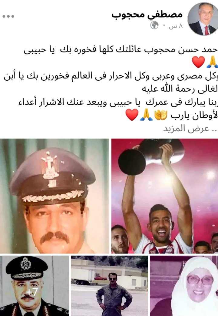 وأثنى مصطفى محجوب عم اللاعب، وأحد أبناء مركز فاقوس محافظة الشرقية، على موقف ابن شقيقه المحترف بصفوف نادي بينديك التركي، على خلفية تضامنه مع دولة فلسطين، وما يتعرض له الأطفال الفلسطينيون من مجازر وجرائم يومية.