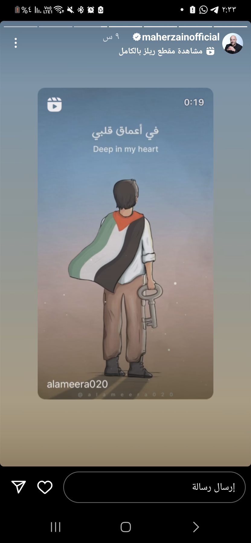 ونشر ماهر زين عبر حسابه الشخصي بموقع “انستجرام” مقطع موسيقي يدعم به الفلسطينيين معلقا: أنتم دائما في أعماق قلبي.. وفلسطين ستبقي حرة..