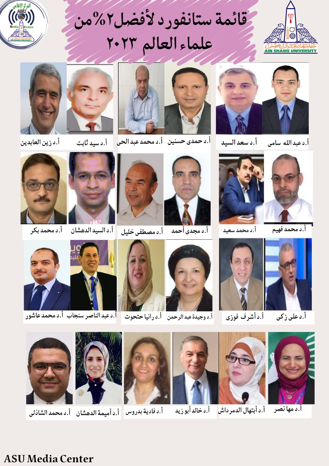 أعلنت الدكتورة غادة فاروق، القائم بأعمال رئيس جامعة عين شمس عن إدراج 48 عالمًا من علماء جامعة عين شمس ضمن افضل علماء العالم وذلك ضمن تحديث جديد لتقرير أصدره باحثين بجامعة ستانفورد الأمريكية والصادر عام 2023.