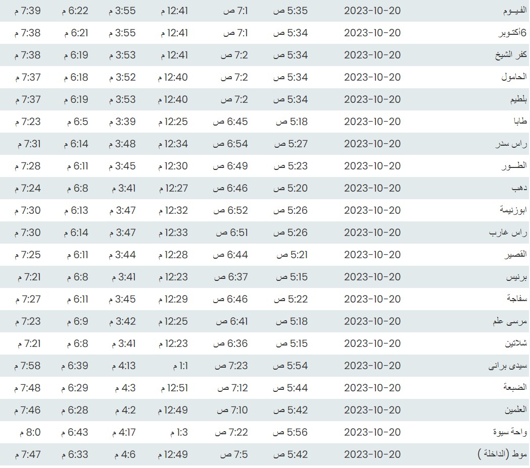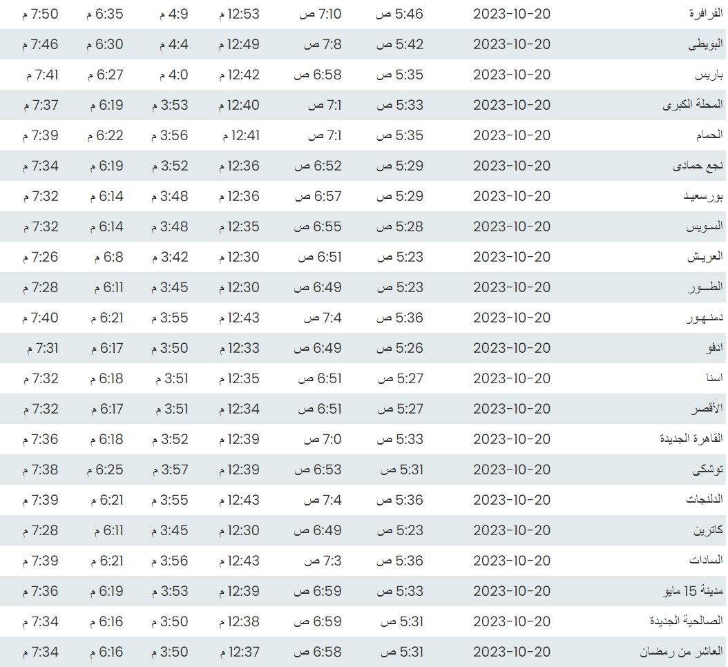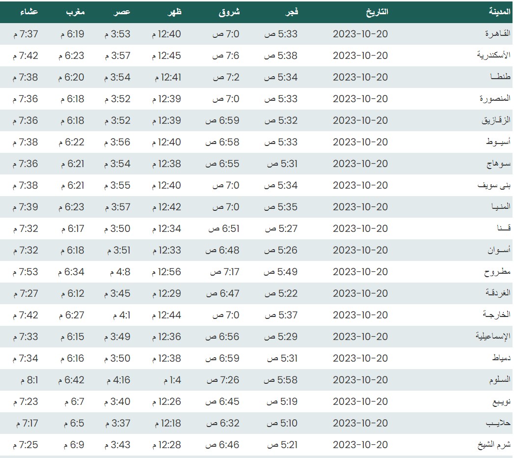 مواقيت الصلاة اليوم بتوقيت القاهرة