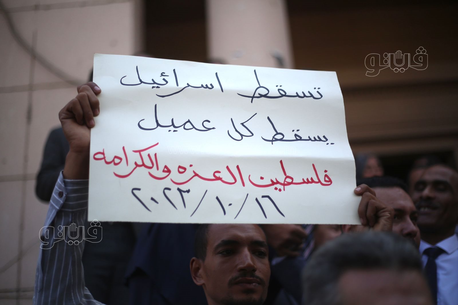 هتف المحامون المشاركون في الوقفة التضامنية التي أعلن عنها اتحاد المحامين العرب داخل مقرات النقابات العربية ولمدة ساعة واحدة، ضد جرائم الاحتلال الاسرائيلي والتنديد بالممارسات الوحشية التي تمارس بحق الشعب الفلسطيني.