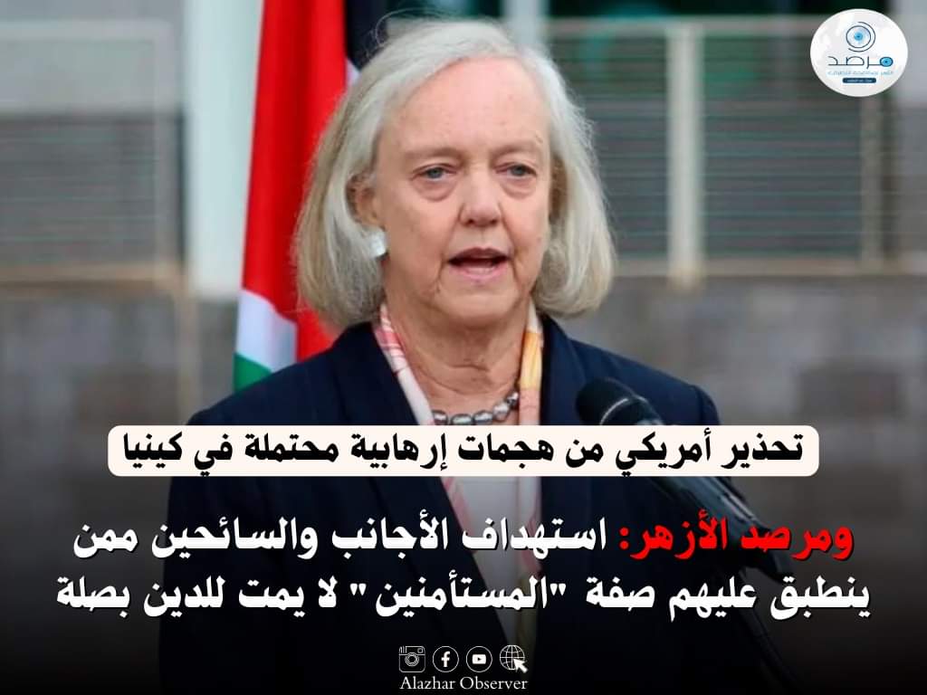 أوضح مرصد الأزهر لمكافحة التطرف، أن سفارة الولايات المتحدة الأمريكية في كينيا أصدرت تحذيرًا من احتمال وقوع هجمات إرهابية في العاصمة الكينية "نيروبي"، مناشدة رعاياها مراجعة خططهم الأمنية الشخصية، وفق ما ذكرته جريدة ديلي نيشن الكينية.