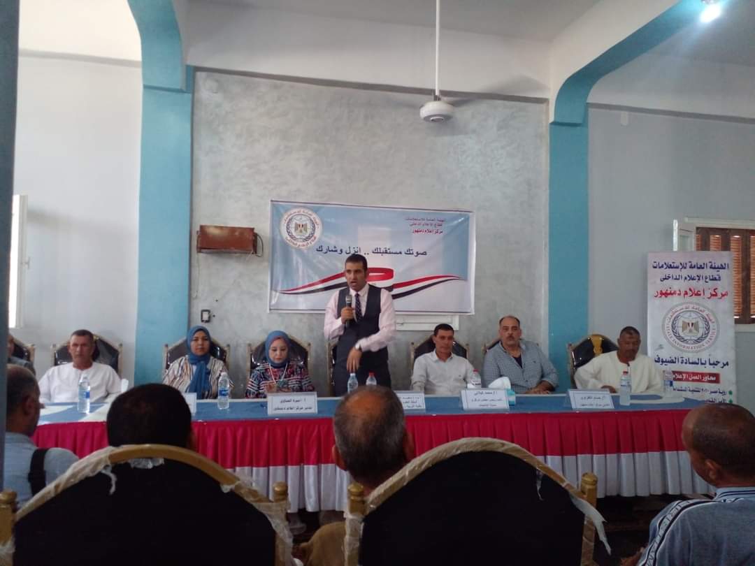 نظم مركز إعلام دمنهور بمحافظة البحيرة برئاسة ميرة الحناوي لقاء توعويا حول ( المشاركة النسائية فى العملية الانتخابية وكيفية تشجيعها ) بقرية مؤسسة البستان بمركز الدلنجات وذلك ضمن فعاليات الحملة التي ينظمها قطاع الإعلام الداخلى التابع للهيئة العامة للاستعلامات تحت شعار (صوتك مستقبلك، انزل وشارك)، ويأتي ذلك تحت رعاية نهال بلبع - نائب محافظ البحيرة.