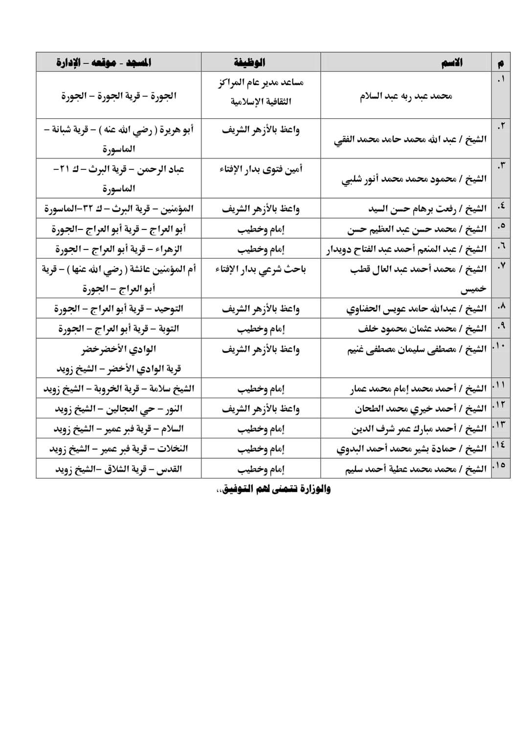 وتفتتح وزارة الأوقاف 16 مسجدًا جديدًا أو إحلالًا وتجديدًا يوم الجمعة الموافق 20 / 10 / 2023م، ليصل إجمالي ما تم افتتاحه من 1/ 7/ 2023م حتى تاريخه ( 260 ) مسجدًا منها ( 192 ) مسجدًا جديدًا أو إحلالًا وتجديدًا، و( 68 ) مسجدًا صيانة وتطويرًا، وهي على النحو التالي: