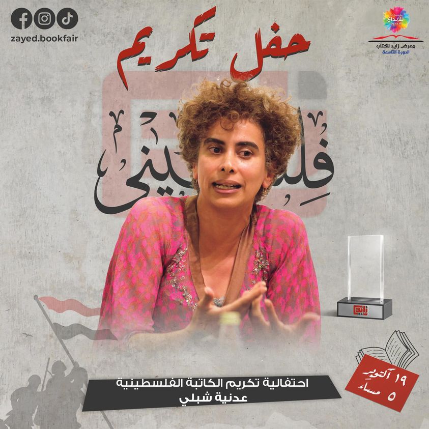 طوفان الأقصى، معرض زايد للكتاب يكرم الكاتبة الفلسطينية عدنية شلبي ردا على إلغاء حفلها بفرانكفورت