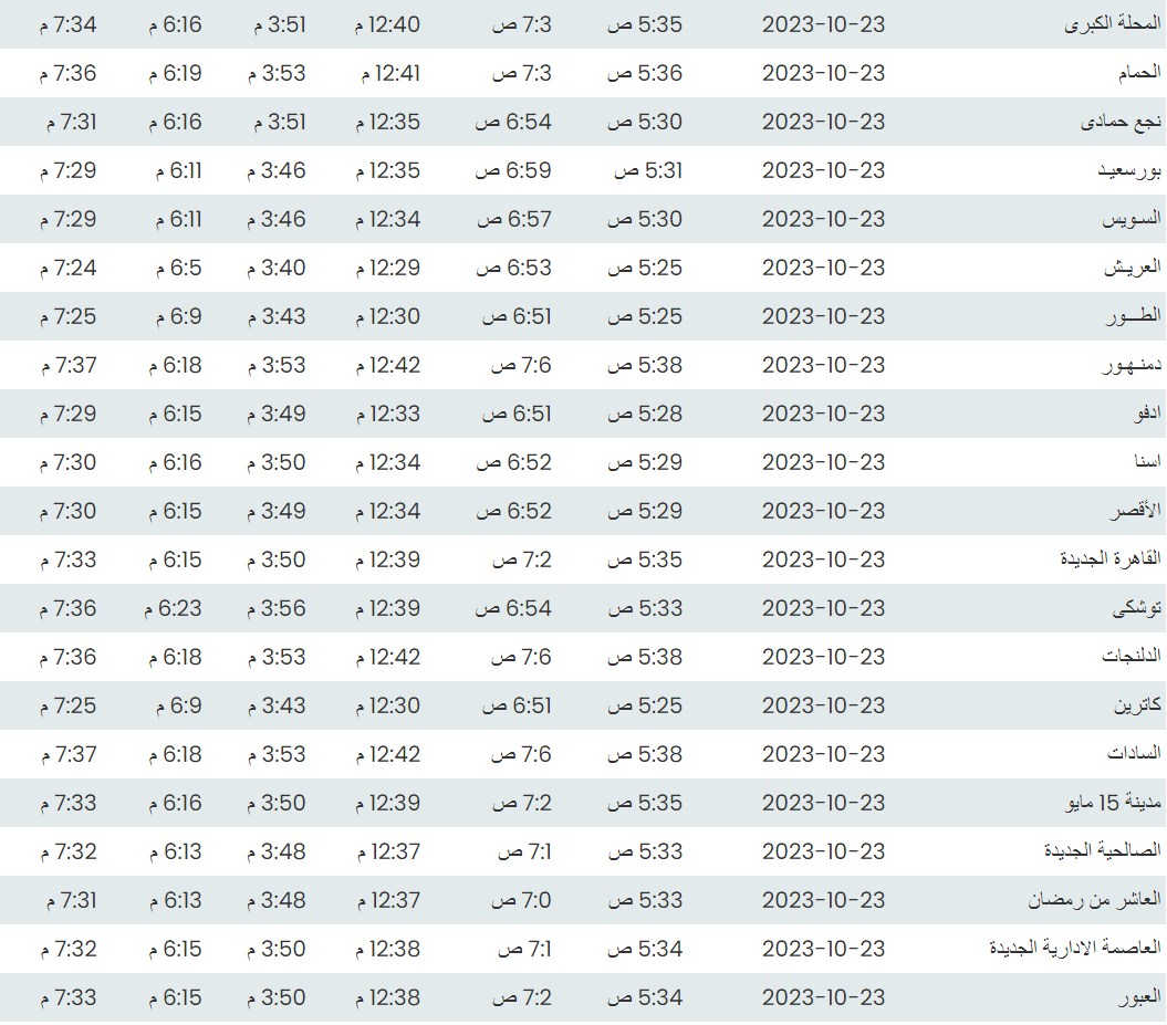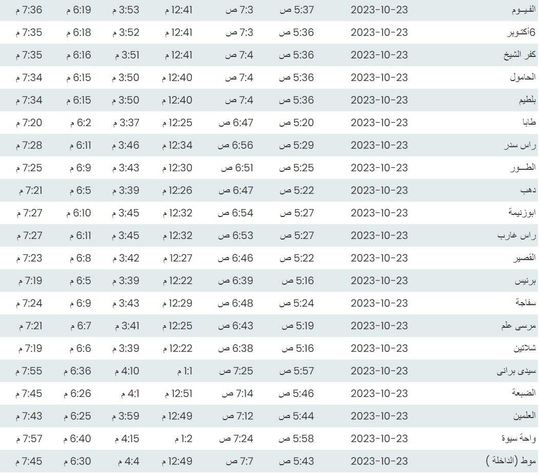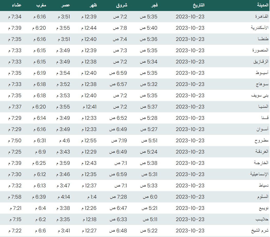 مواقيت الصلاة اليوم، موعد أذان المغرب اليوم الإثنين 23 - 10 - 2023 في القاهرة والمحافظات