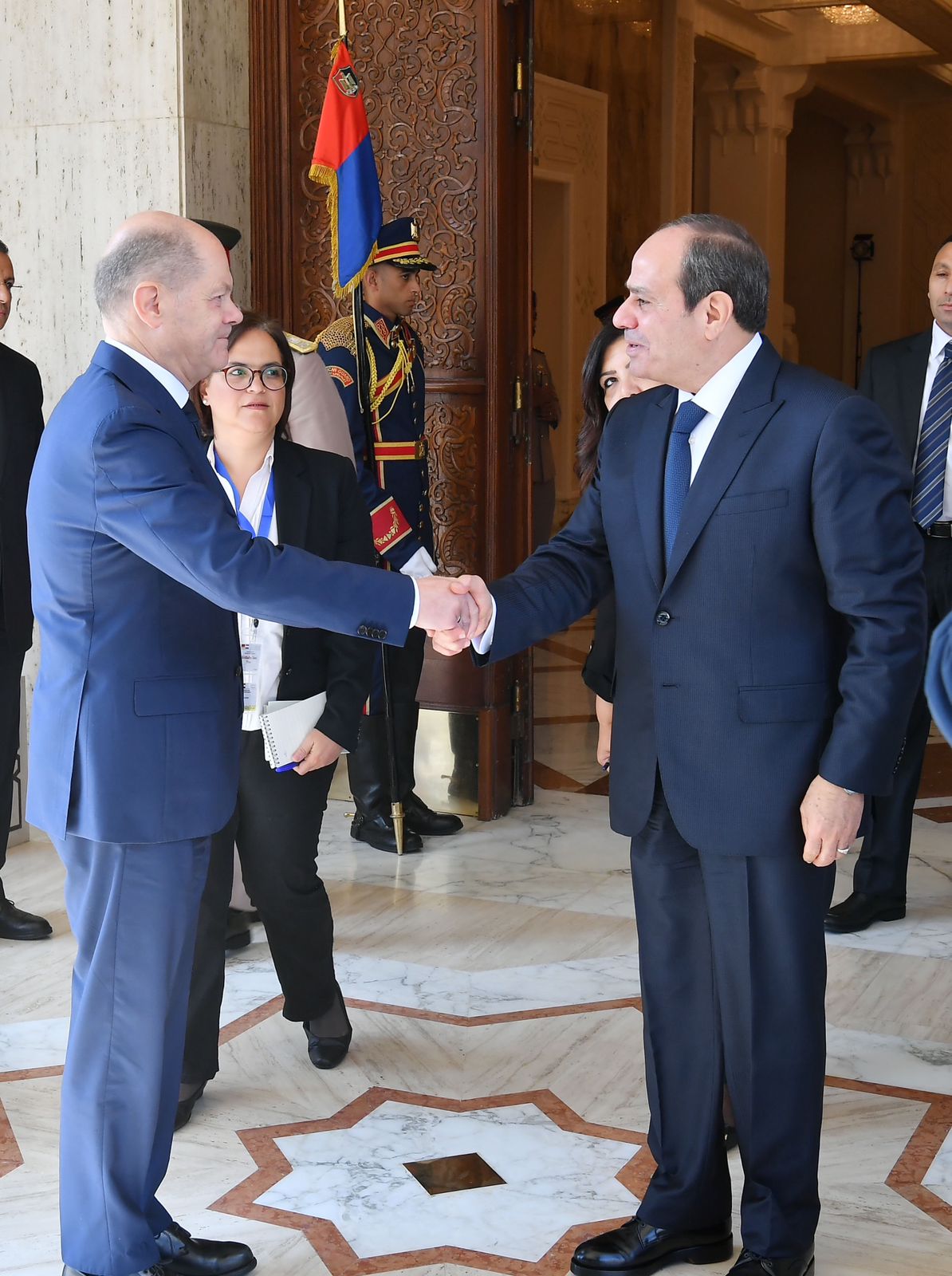 استقبل الرئيس عبد الفتاح السيسي اليوم بقصر الاتحادية المستشار الألماني أولاف شولتز.