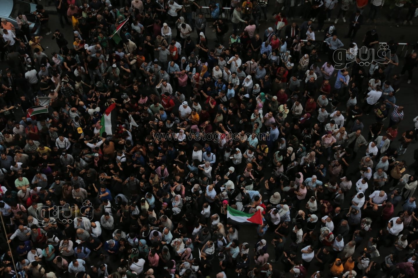 وحمل المشاركون لافتات دون عليها عبارات دعم الصمود الشعب الفلسطيني من بينها:" من الشعب طلع القرار لازم نكسر الحصار"، و" ولا تهجير ولا توطين الأرض أرض فلسطين"، و"احرق في العلم الصهيوني دول ظلموني ودول قتلوني".