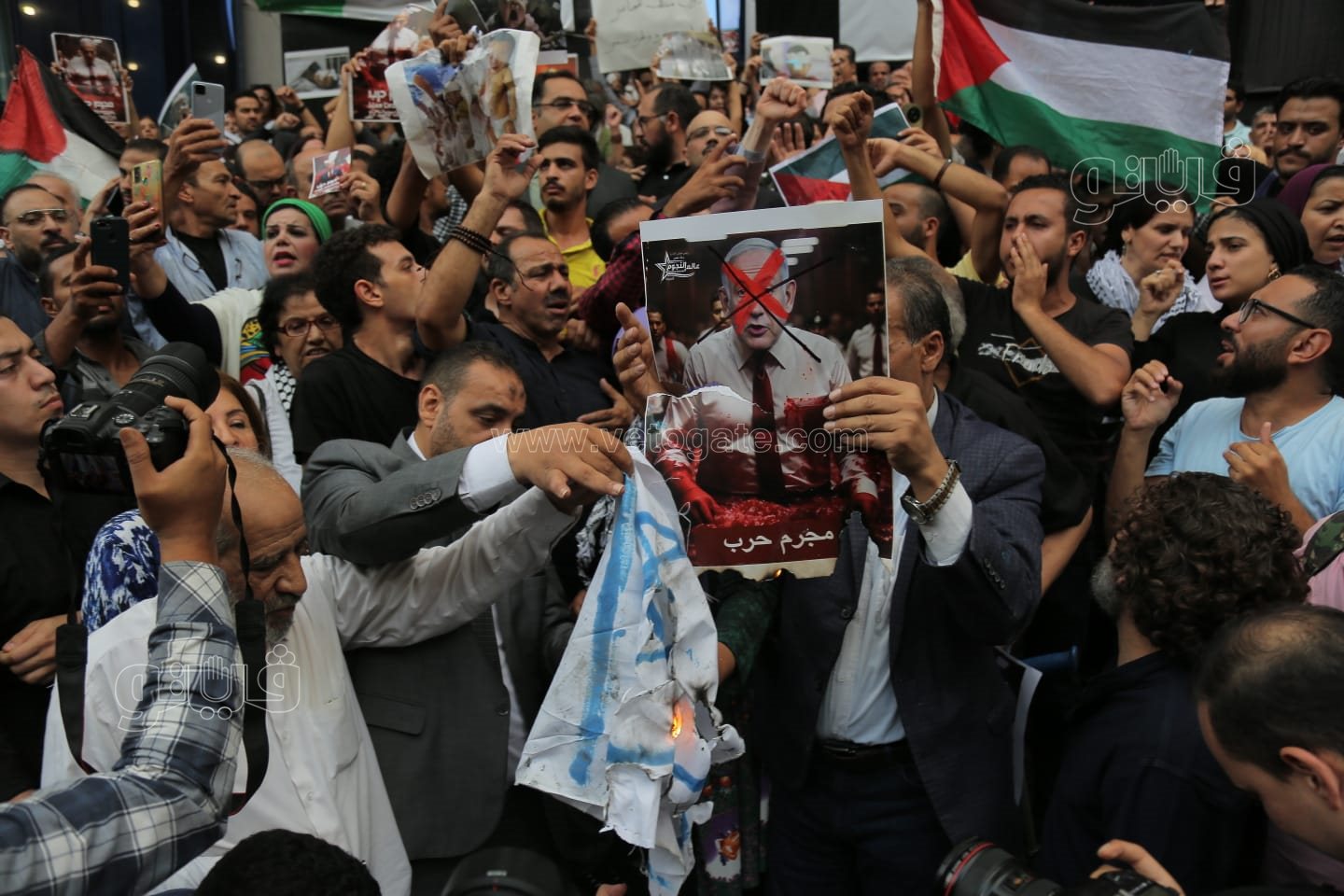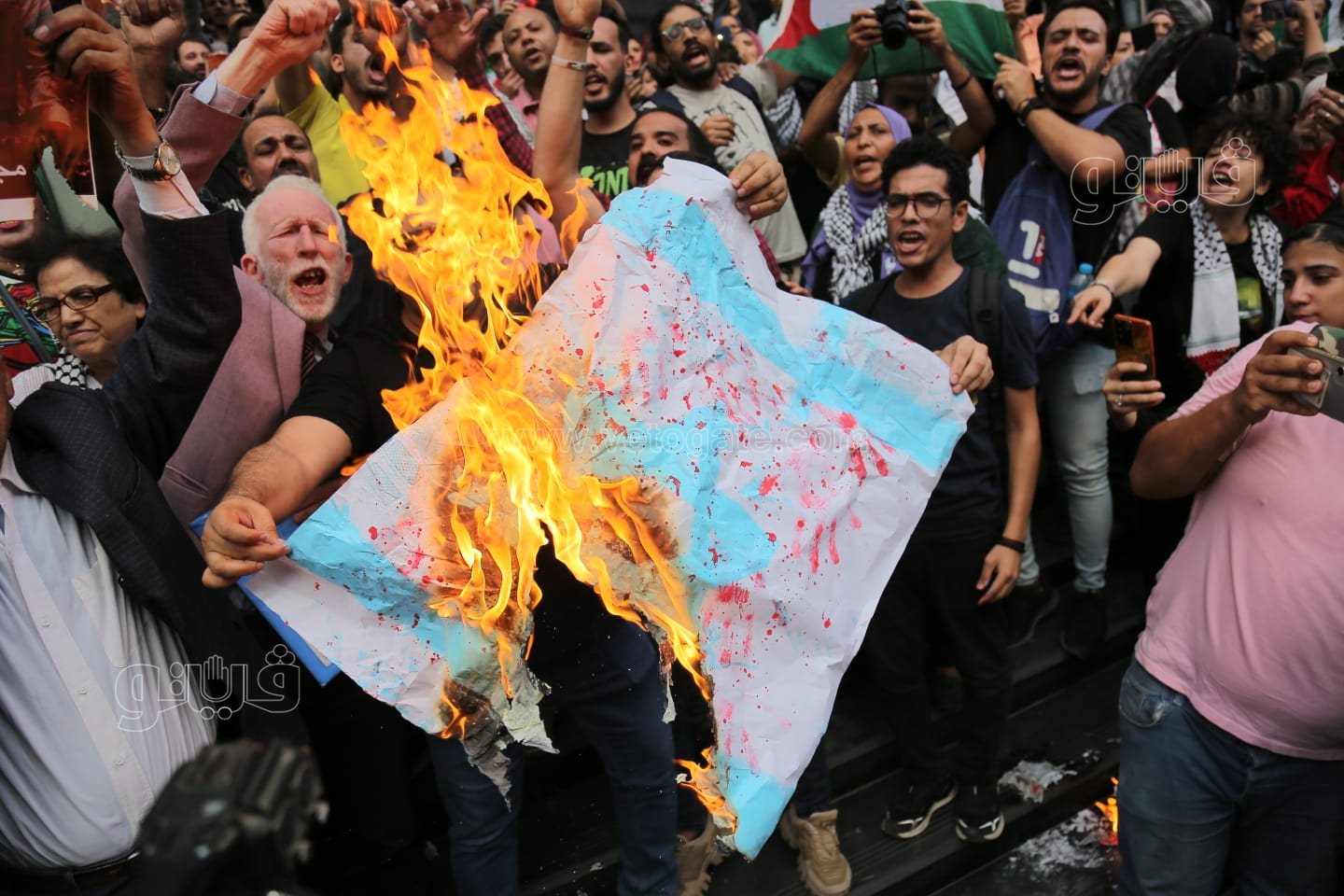 حرق العلمين الأمريكي والإسرائيلي أمام نقابة الصحفيين