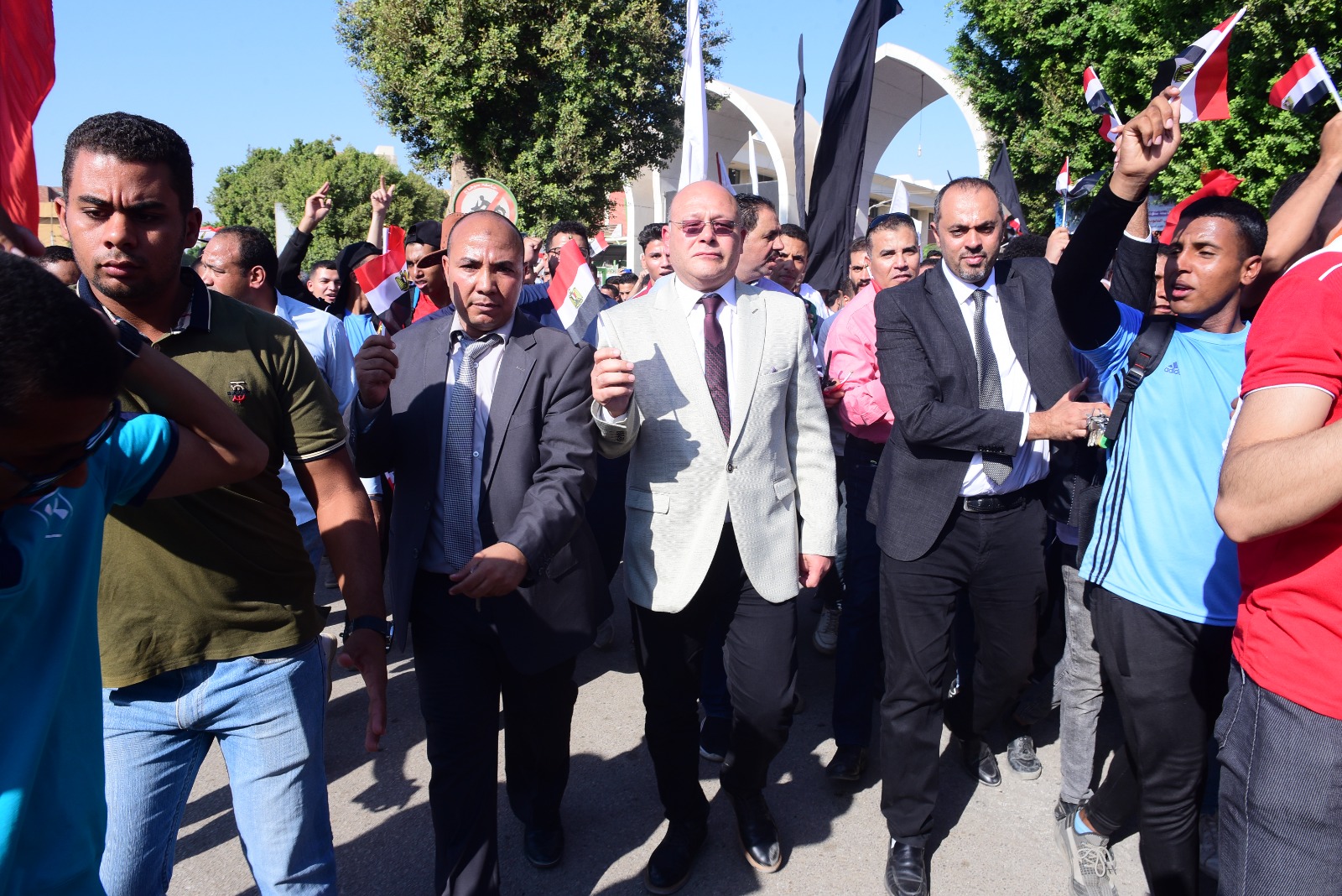 مسيرة لتأييد موقف مصر والسيسي من القضية الفلسطينية والتضامن مع شعبها بجامعة سوهاج