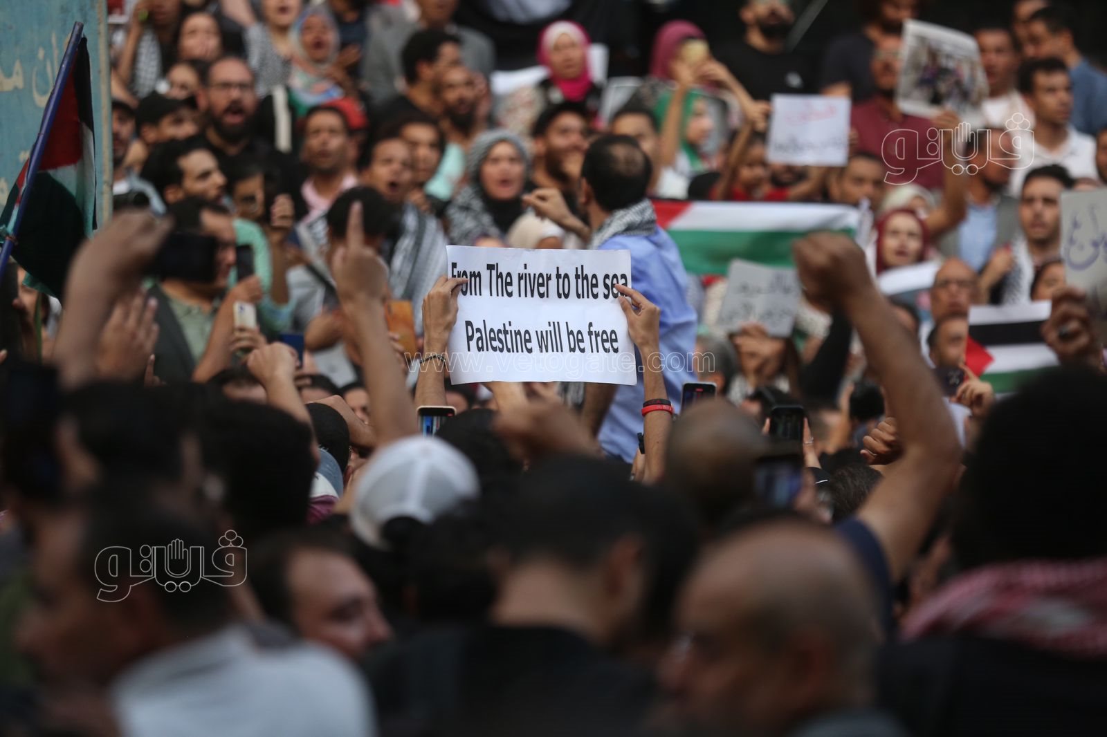 وحمل المشاركون لافتات دُون عليها عبارات دعم الصمود الشعب الفلسطيني من بينها:" من الشعب طلع القرار لازم نكسر الحصار"، و" ولا تهجير ولا توطين الأرض أرض فلسطين"، و"احرق في العلم الصهيوني دول ظلموني ودول قتلوني".