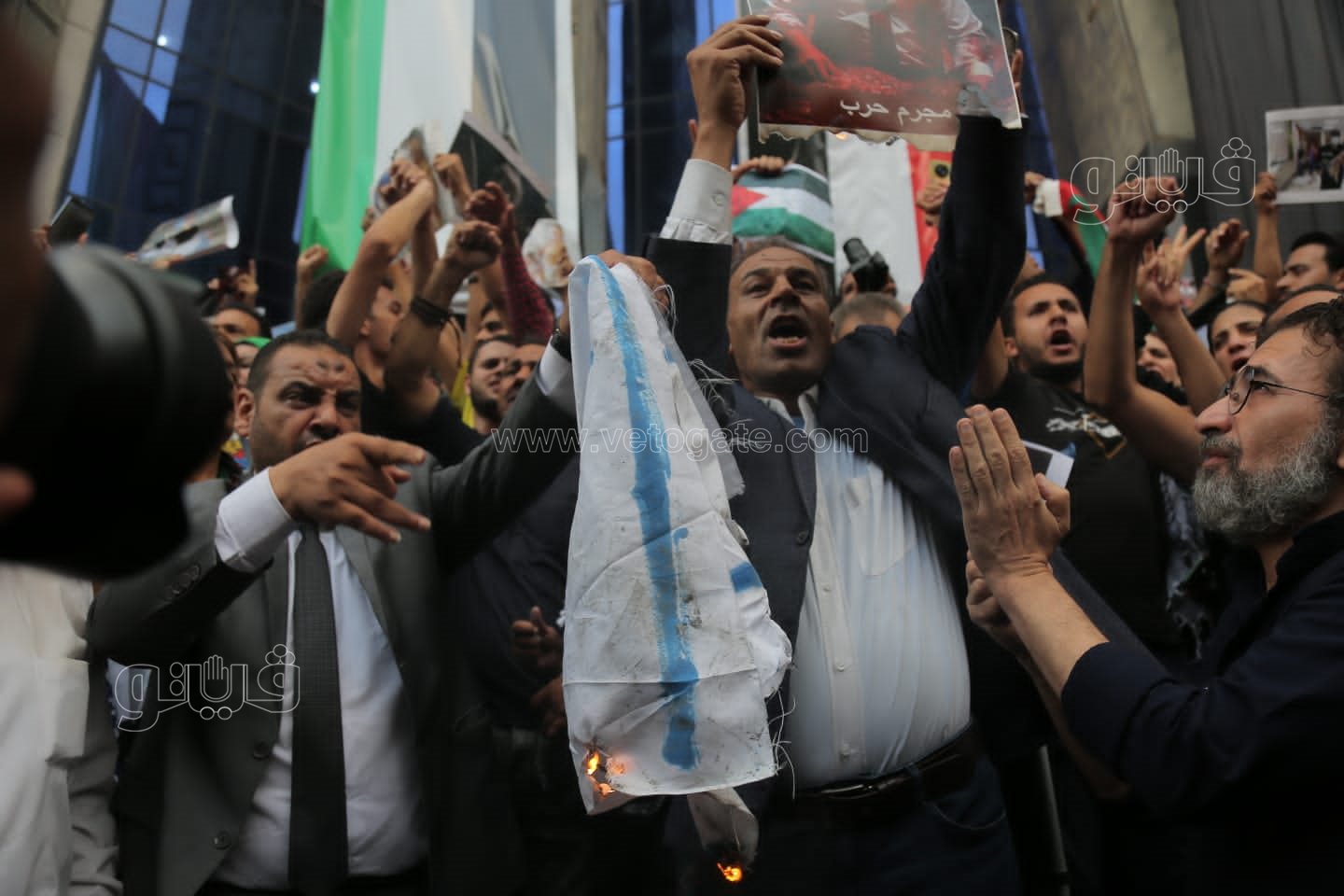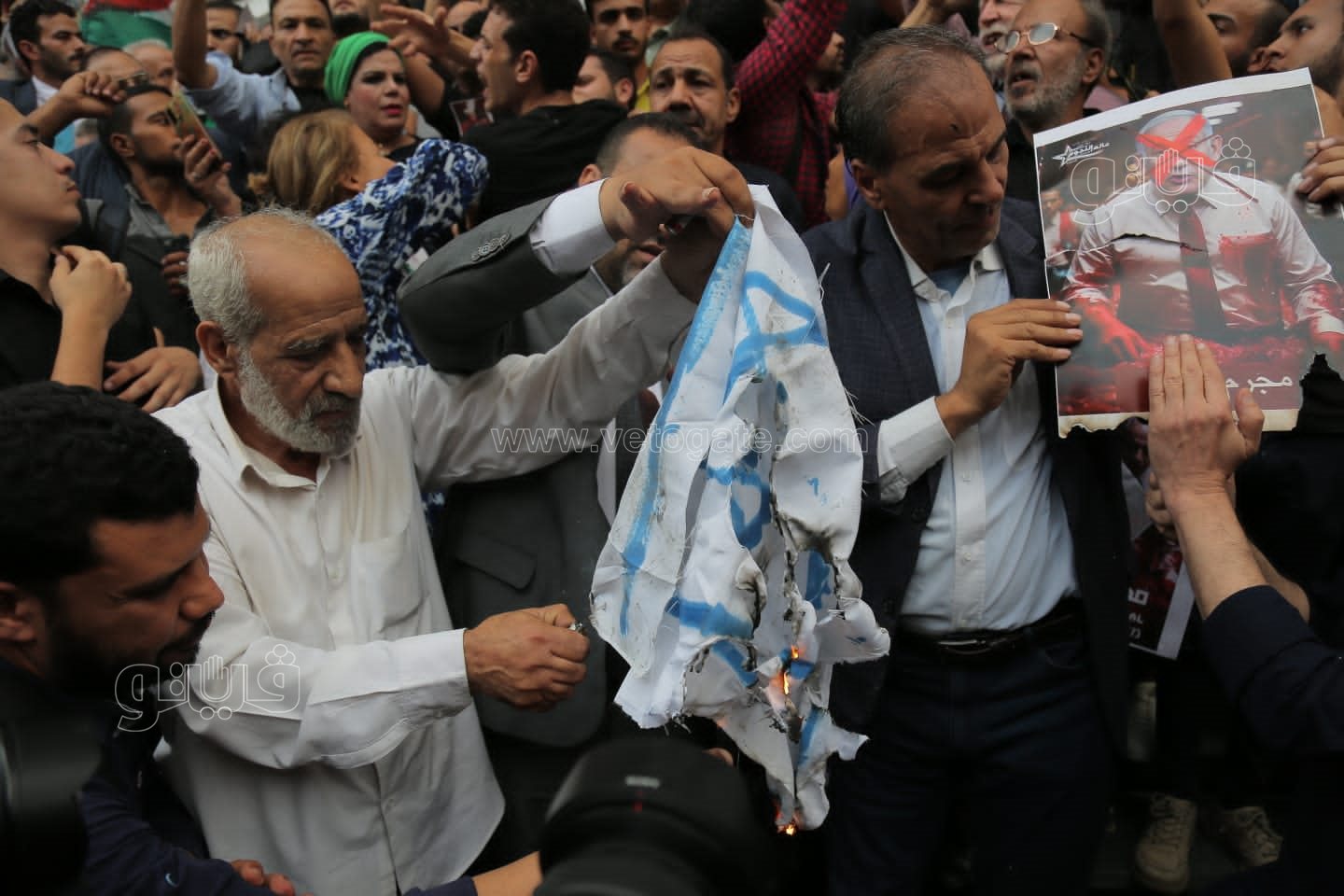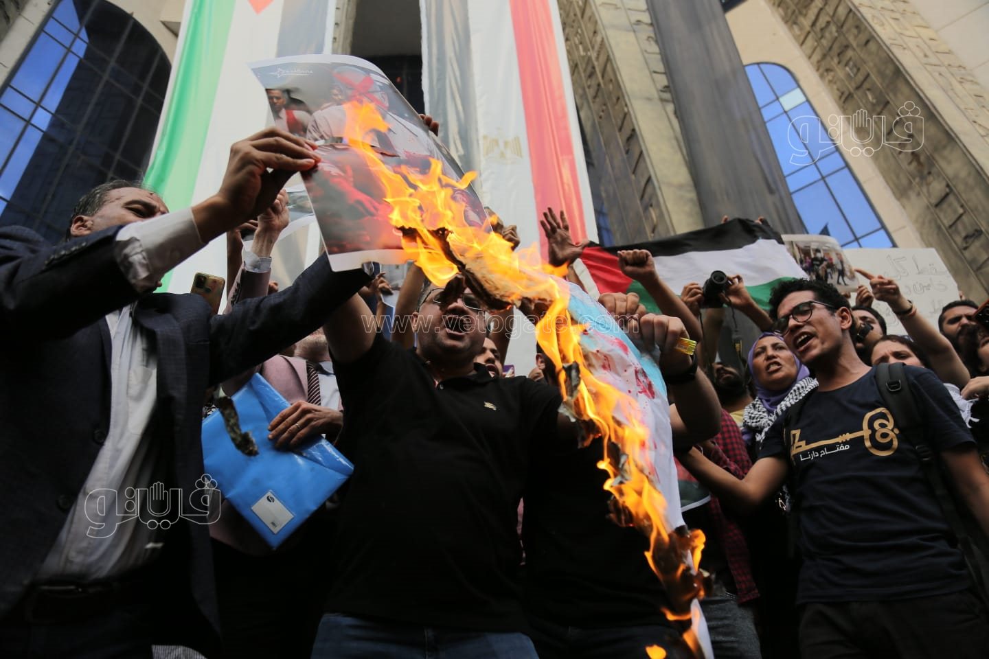 حرق العلمين الأمريكي والإسرائيلي أمام نقابة الصحفيين