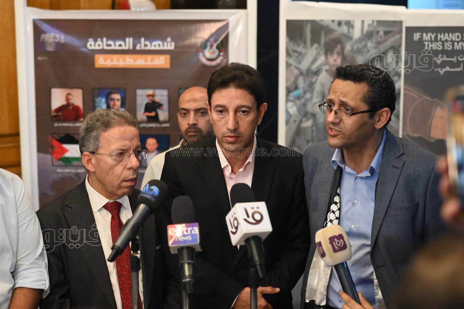 وعقد منذ قليل كل من الكاتب الصحفي خالد البلشي، نقيب الصحفيين، والدكتور أسامة عبد الحي، نقيب الأطباء، والدكتور خالد سليم، نقيب الأطباء البيطريين، مؤتمرًا صحفيًا مشتركا، داخل مقر نقابة الصحفيين، على خلفية الأحداث في قطاع غزة.