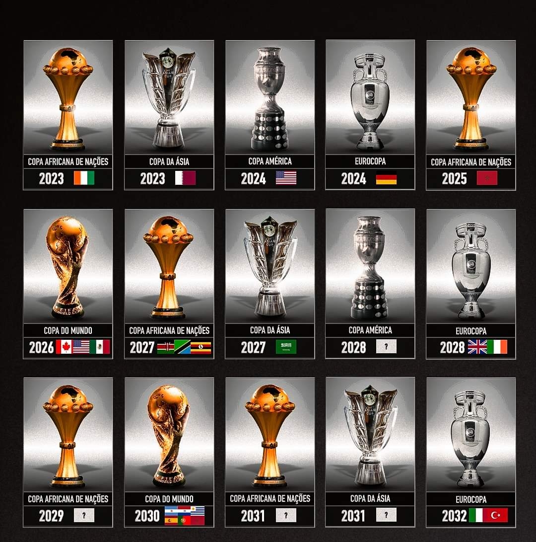 ومن المنتظر أن يقام كأس العالم في نسخته المقبلة 2026 في أمريكا وكندا والمكسيك، بينما بطولة 2030 ستكون بتنظيم ثلاثي بين إسبانيا والبرتغال والمغرب.