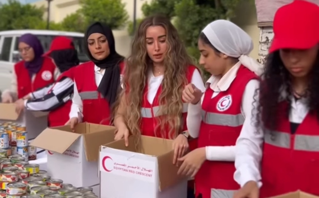 هدى المفتي وهنا الزاهد يشاركان الهلال الأحمر المصري لدعم شعب فلسطين