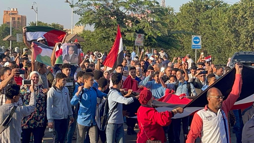 وأكد الطلاب والموظفون خلال مظاهرات حاشدة، اليوم، دعمهم لموقف مصر المنحاز للقضية الفلسطينية دائما، مدركين جيدا أن هذا المخطط بكل مجازره وجرائمه يتجاوز فكرة توجيه عمل عسكري من جانب الاحتلال ضد أهل غزة، التي هي جرائم حرب لا تسقط بالتقادم، بل إننا أمام خطة شاملة يهدف بها الاحتلال لتصفية قضية فلسطين والمساس بالأمن القومي المصري، ولذلك أكدوا دائما أن الأمن القومي المصري خط أحمر لا يمكن تجاوزه، وأن مصر قيادة وشعبا صف واحد في مواجهة أي مساس بأمننا القومي.