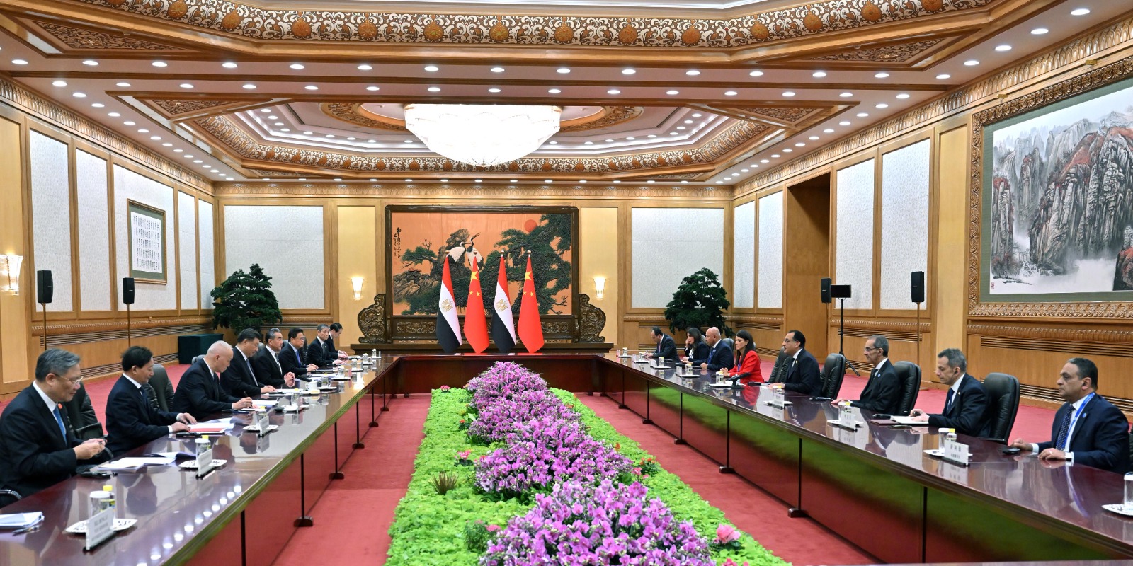 استقبل الرئيس الصيني، شي جين بينج، صباح اليوم، الدكتور مصطفى مدبولي، رئيس مجلس الوزراء، بقاعة الشعب الكبرى بالعاصمة الصينية بكين، وذلك بحضور الدكتورة رانيا المشاط، وزيرة التعاون الدولي، والدكتور عمرو طلعت، وزير الاتصالات وتكنولوجيا المعلومات، والفريق كامل الوزير، وزير النقل، والسفير عاصم حنفي، سفير مصر لدى الصين، إلى جانب عدد من كبار المسئولين بالحكومة الصينية.