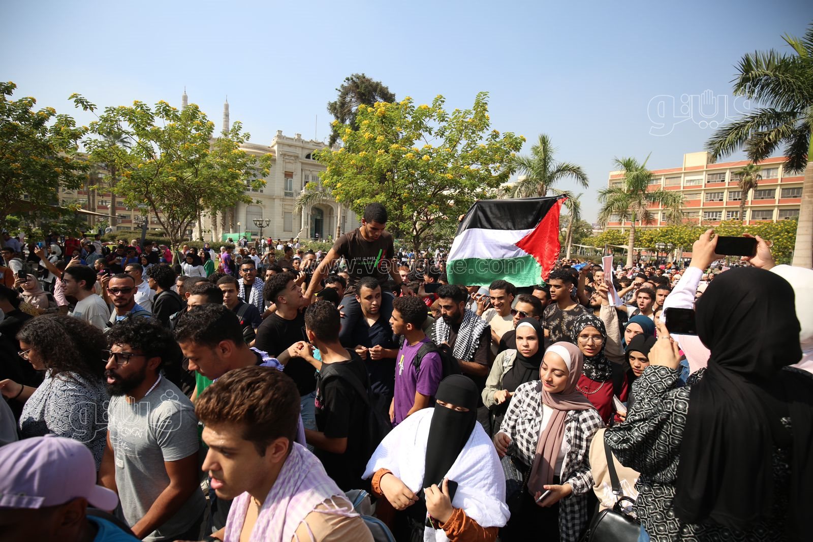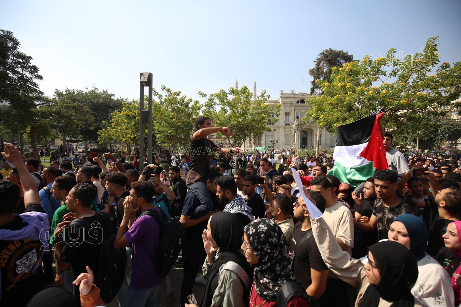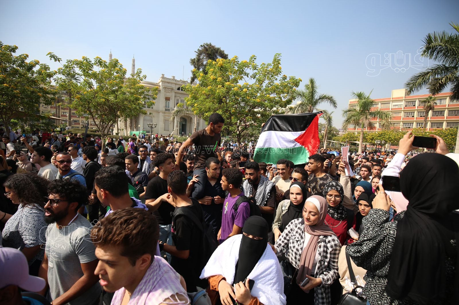 مسيرة حاشدة لطلاب جامعة عين شمس تضامنا مع الشعب الفلسطيني (فيديو وصور)