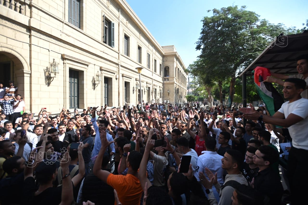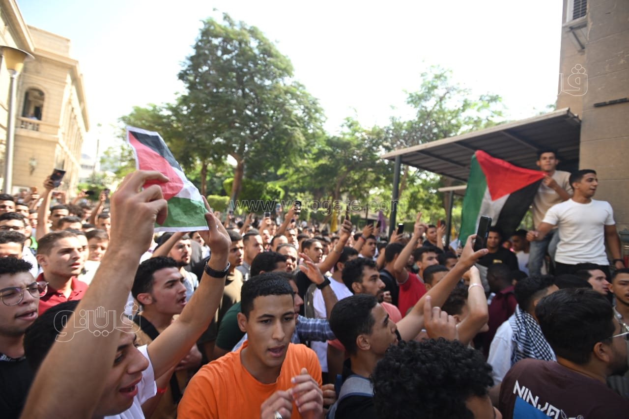 نظم طلاب جامعة القاهرة، مسيرة حاشدة شارك فيها العشرات من الطلاب داخل الحرم الجامعي صباح اليوم للتنديد بالاحتلال الإسرائيلي وما يرتكبه من جرائم، والتضامن مع الشعب الفلسطيني بعد الانتهاكات التي تعرض لها قطاع غزة من قتل الأبرياء العزل.