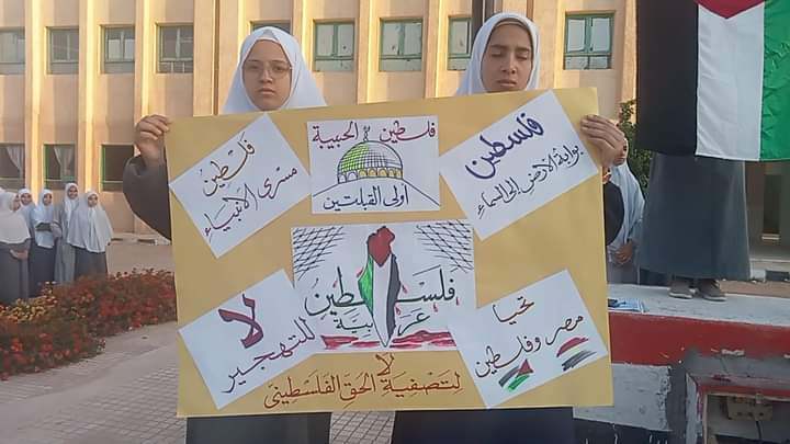 وأكد الدكتور رضا حجازي أن الوزارة تضع القضية الفلسطينية واستعادة حقوق الشعب الفلسطيني على رأس جهود التوعية التي تقدمها لأبنائها الطلاب، مضيفا أن وزارة التربية والتعليم، طلابا ومعلمين، تقف صفا واحدا خلف القيادة السياسية في كافة القرارات التي تتخذها حفاظا على السيادة المصرية والحقوق المشروعة للشعب الفلسطيني الشقيق.