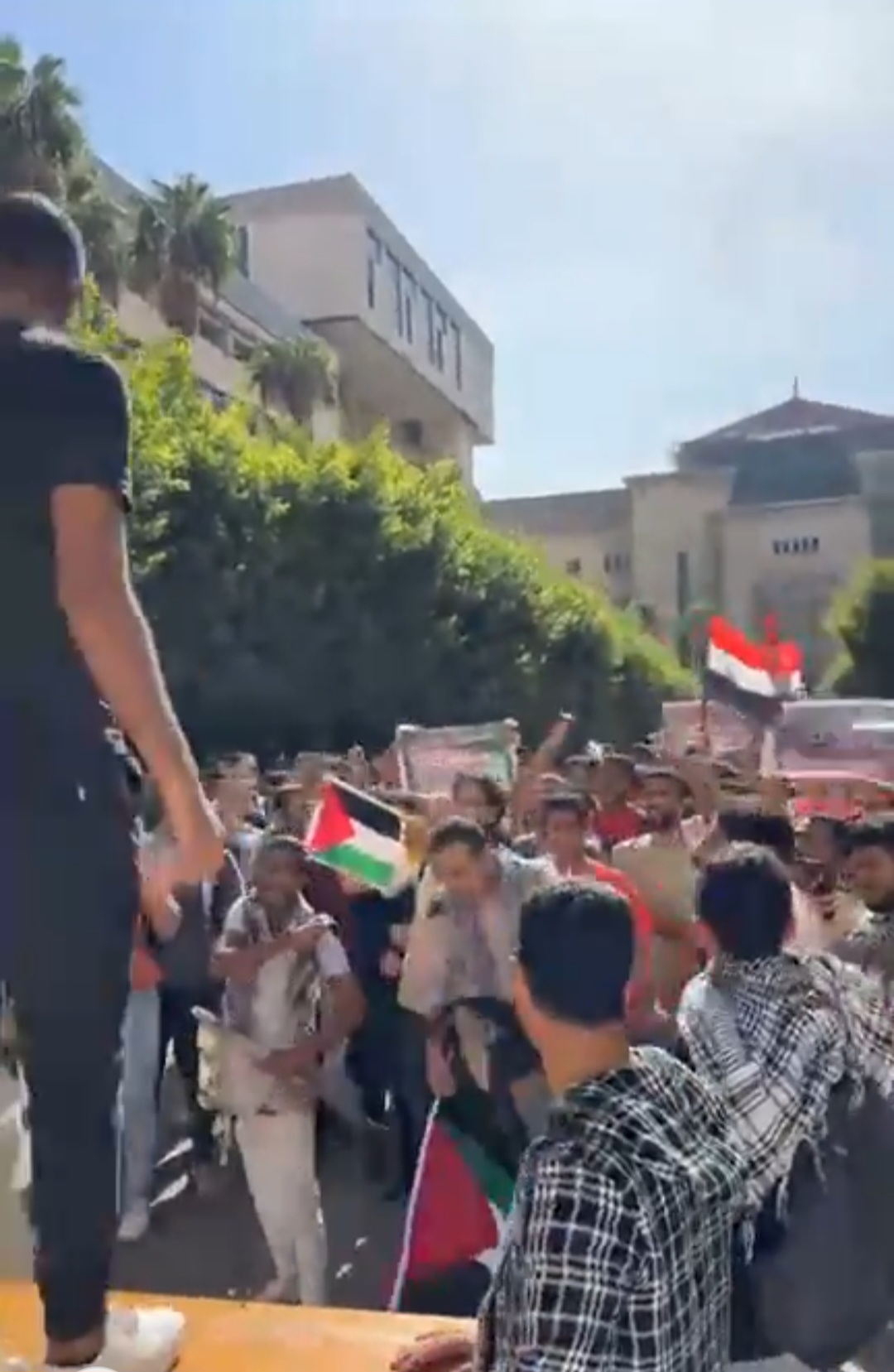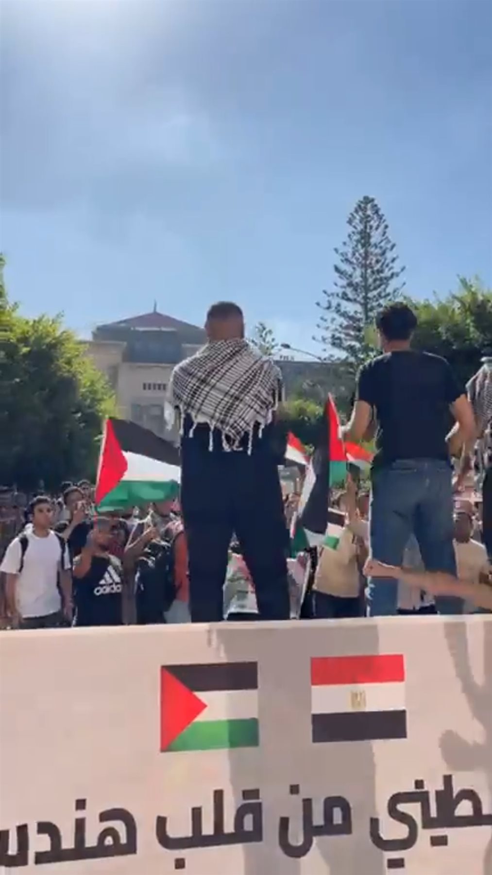 نظم اتحاد طلاب كلية الهندسة جامعة الإسكندرية مظاهرة حاشدة داخل الكلية بمنطقة الشاطبي للتضامن مع الشعب الفلسطيني وتنديدا بما يفعله جنود الاحتلال الصهيوني من قصف مستشفى الأهلي المعمداني بغزة، ودعما لقرارات الرئيس عبدالفتاح السيسي الخاصة بفلسطين.