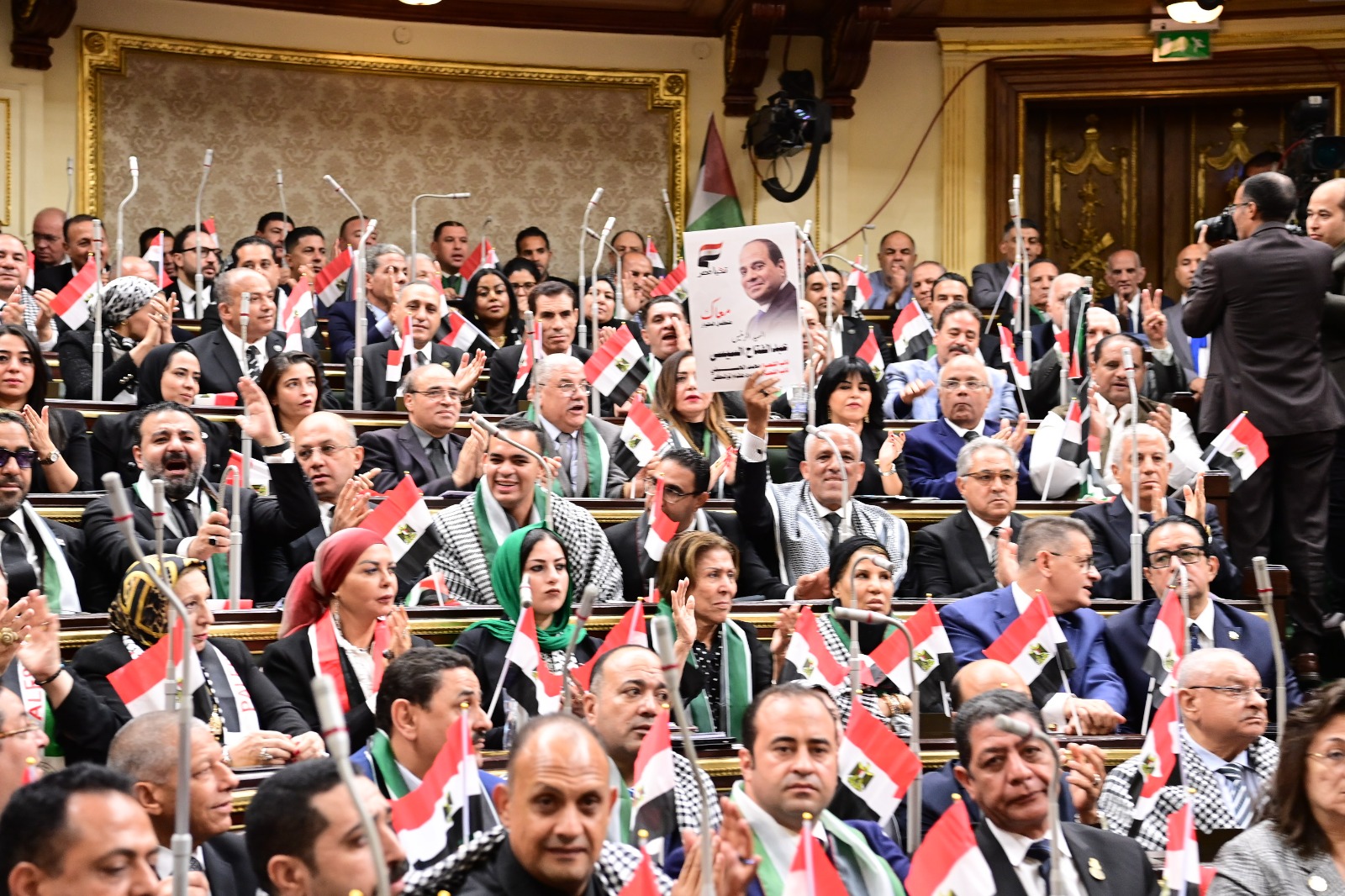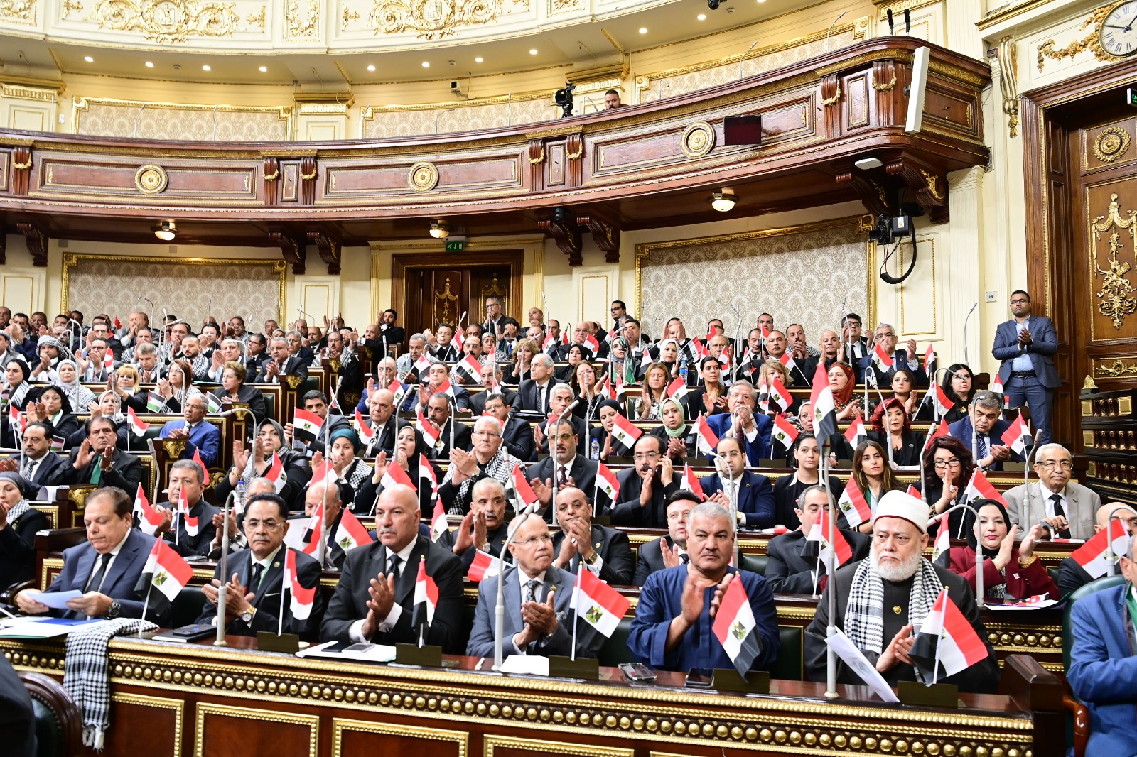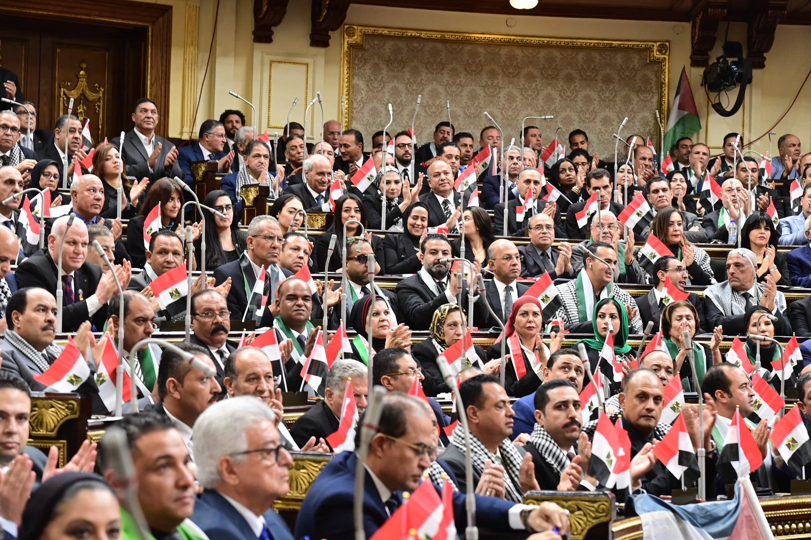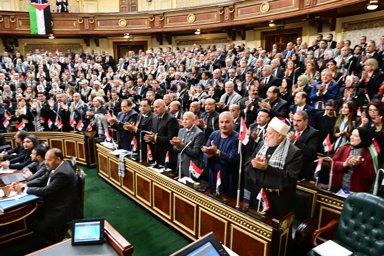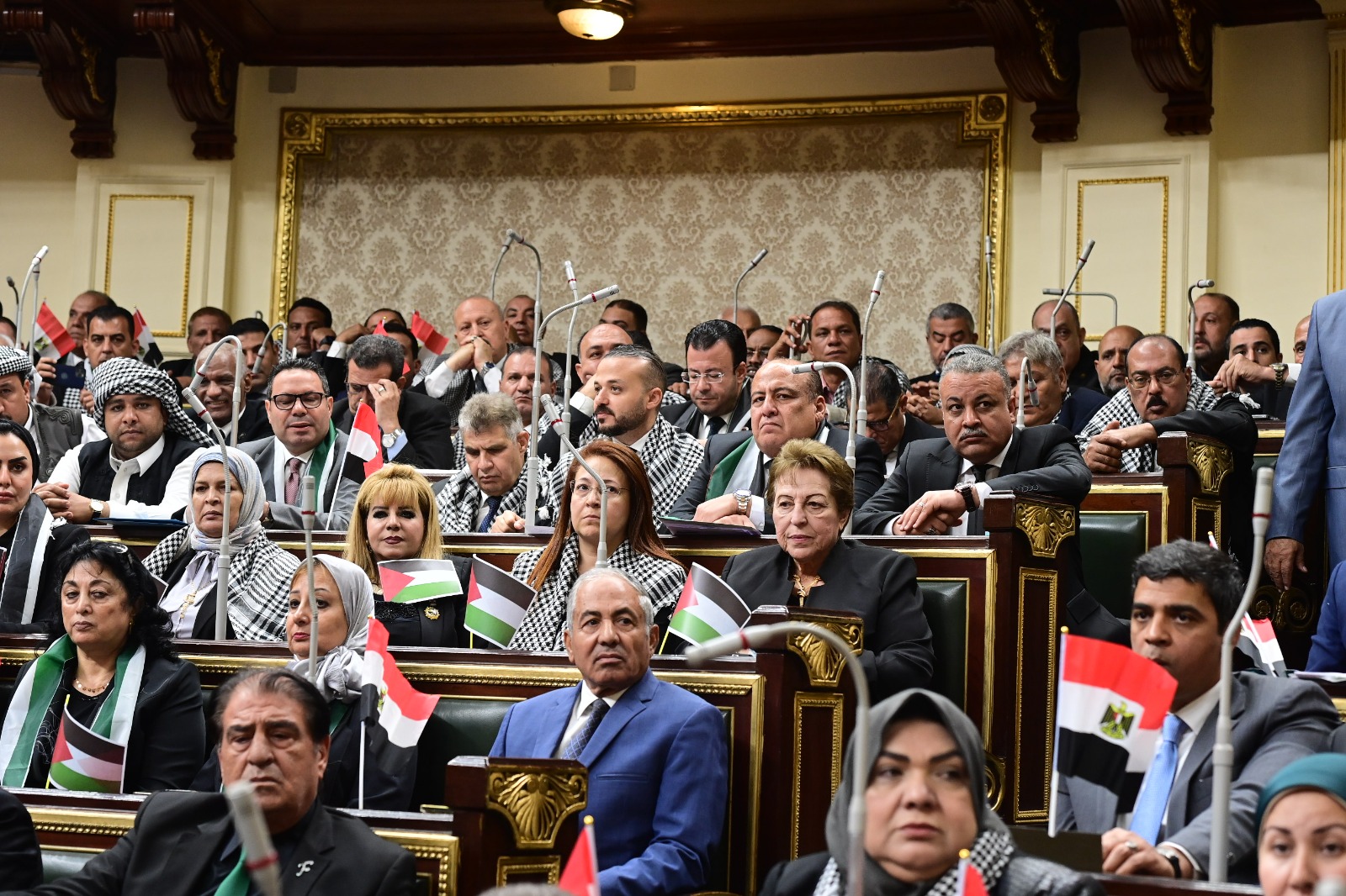 مجلس النواب يتشح بعلمي مصر وفلسطين في الجلسة الطارئة (صور)