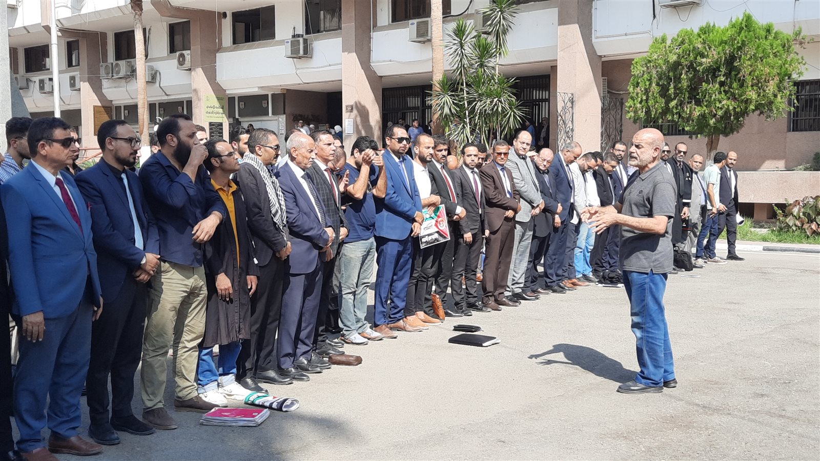 أدى العشرات من المحامين في ساحة مجمع محاكم الإسماعيلية، صلاة الغائب على أرواح شهداء قطاع غزة والذين يتعرضون لعملية إبادة جماعية على يد العدو الصهيوني الغاشم.