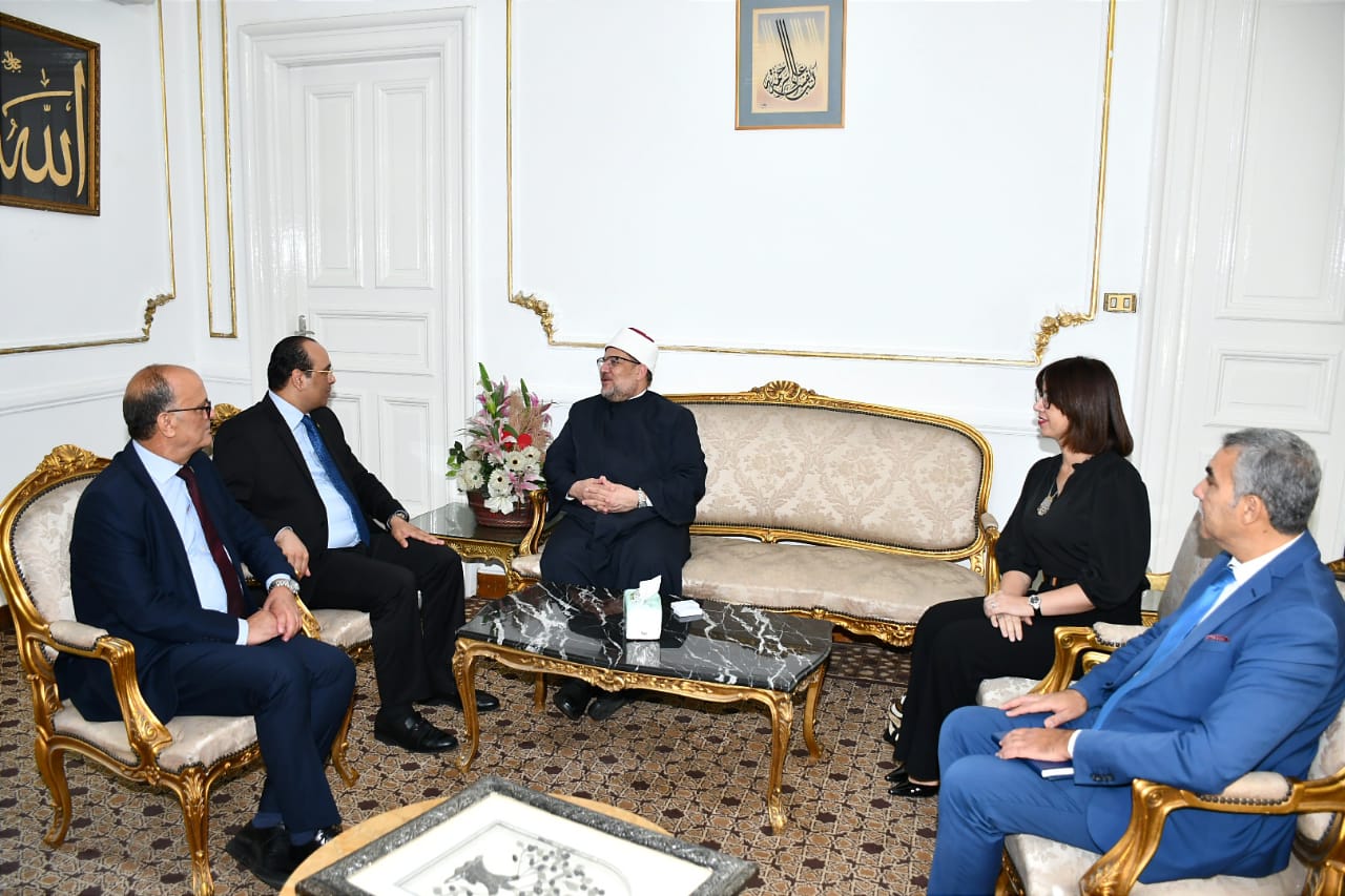 استقبل الدكتور محمد مختار جمعة وزير الأوقاف اليوم الخميس 19/ 10/ 2023م نظيره التونسي الدكتور إبراهيم الشائبي وزير الشئون الدينية بجمهورية تونس، والوفد المرافق له: محمد بن يوسف سفير جمهورية تونس بالقاهرة، والعربي عبد الصمد مستشار وزير الشئون الدينية التونسي، وضحى الشويخ وزير مفوض سفارة تونس بالقاهرة، وذلك بمقر المجلس الأعلى للشئون الإسلامية بجاردن سيتي.