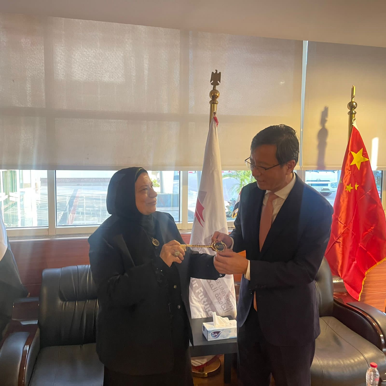 وأهدت الدكتورة كريمة عبد الكريم رئيس إلى تشن جي نائب وزير التعليم الصيني رمز مفتاح الجامعة المصرية الصينية ( نافذة التعليم والثقافة الصينية في مصر والشرق الأوسط وشمال افريقيا) لتوصيله إلى وزارة التعليم الصينية كرسالة تحمل معاني استمرار التعاون بين الجامعة ودولة الصين في نقل أحدث تقنيات التعليم الصينية إلى مصر والشرق الأوسط وأفريقيا.
