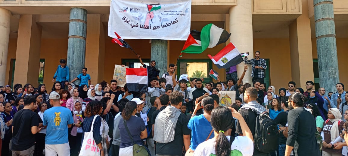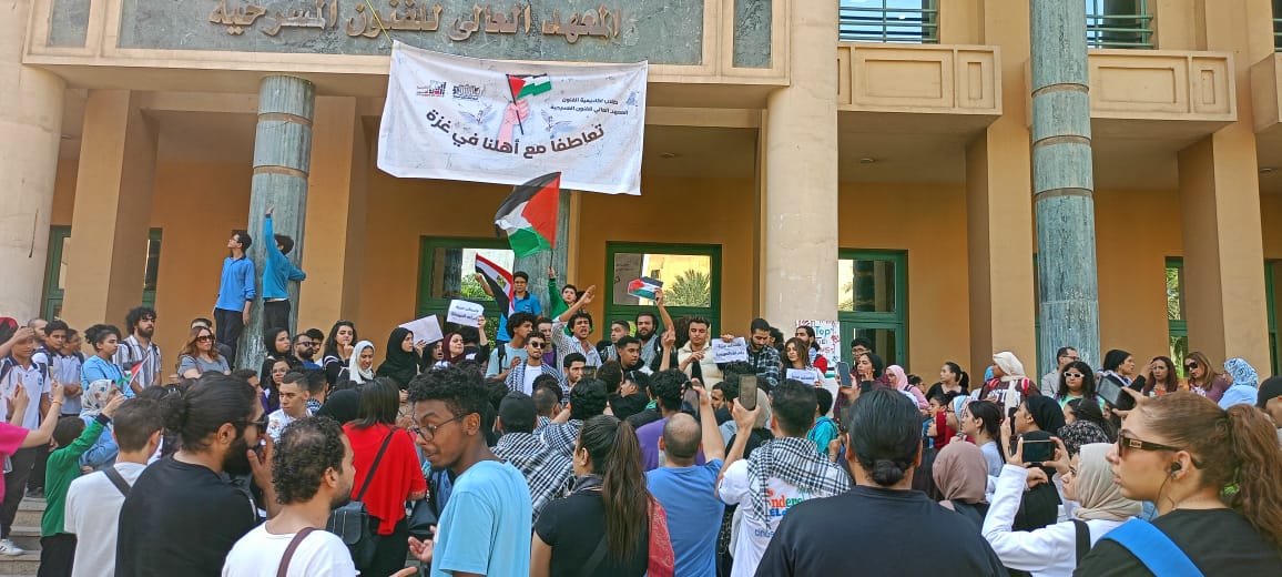 نظم اتحاد طلاب أكاديمية الفنون بالتعاون مع الاتحادات الطلابية فى جميع المعاهد، اليوم، وقفة تضامنية، على سلم المعهد العالي للفنون المسرحية، لدعم الأشقاء الفلسطينيين والتنديد بجرائم الاحتلال الإسرائيلي الغاشم، خاصة بعدما تم قصف المستشفى المعمداني وسقوط المئات من الشهداء والمصابين.