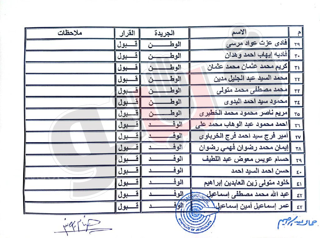 وانعقدت اللجنة خلال أيام 29 - 30 - 31 يوليو الماضي، وأعلنت الأسماء يوم السبت 22 يوليو مع تحديد موعد حضور كل جريدة.
