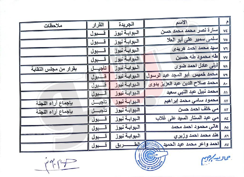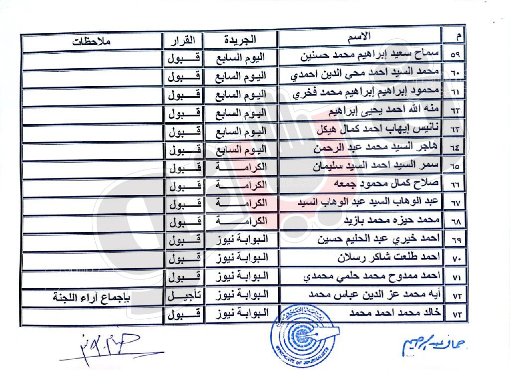 أعلنت لجنة القيد بنقابة الصحفيين، برئاسة الكاتب الصحفي هشام يونس، وكيل المجلس، عن نتيجة لجنة قيد جدول المشتغلين التي انعقدت في يوليو الماضي.