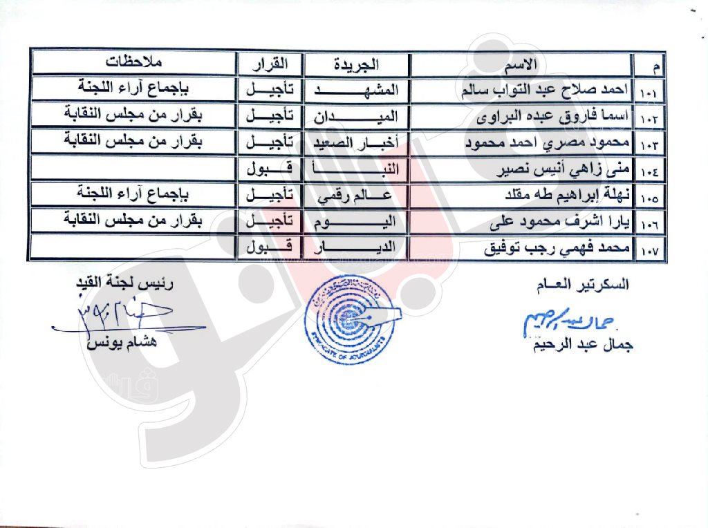 بالأسماء، إعلان نتيجة لجنة قيد المشتغلين بنقابة الصحفيين
