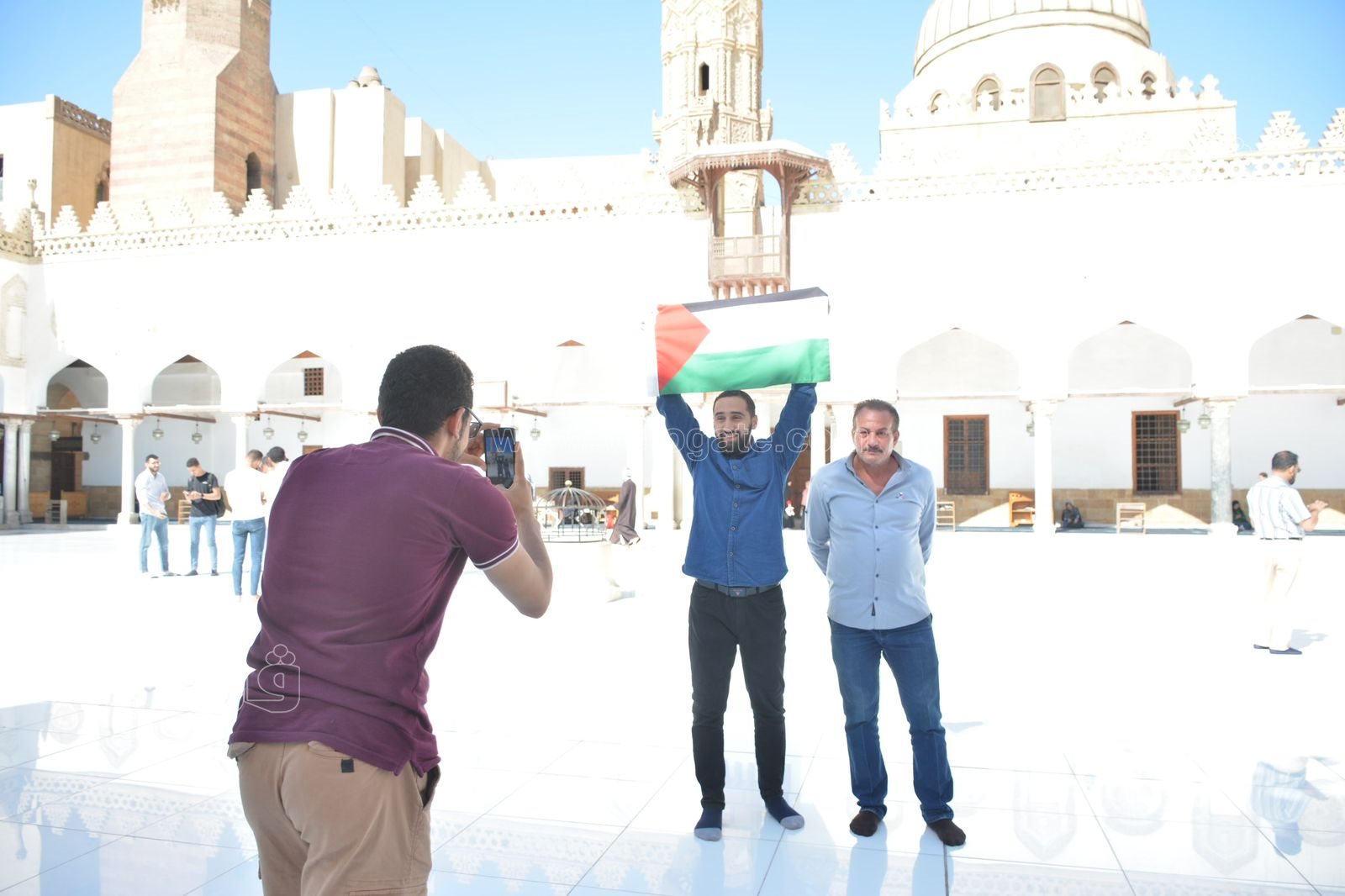 علم فلسطين يتصدر المشهد بساحة جامع الأزهر قبل صلاة الجمعة (صور)