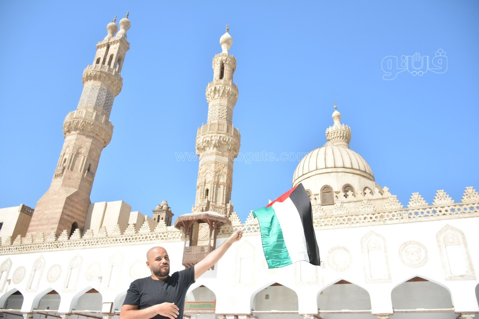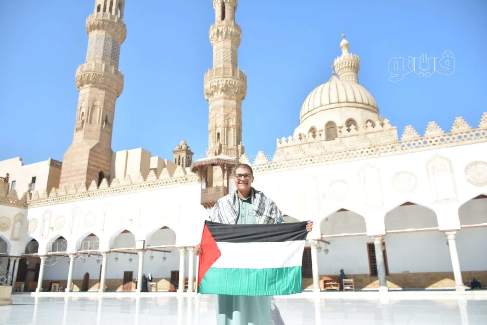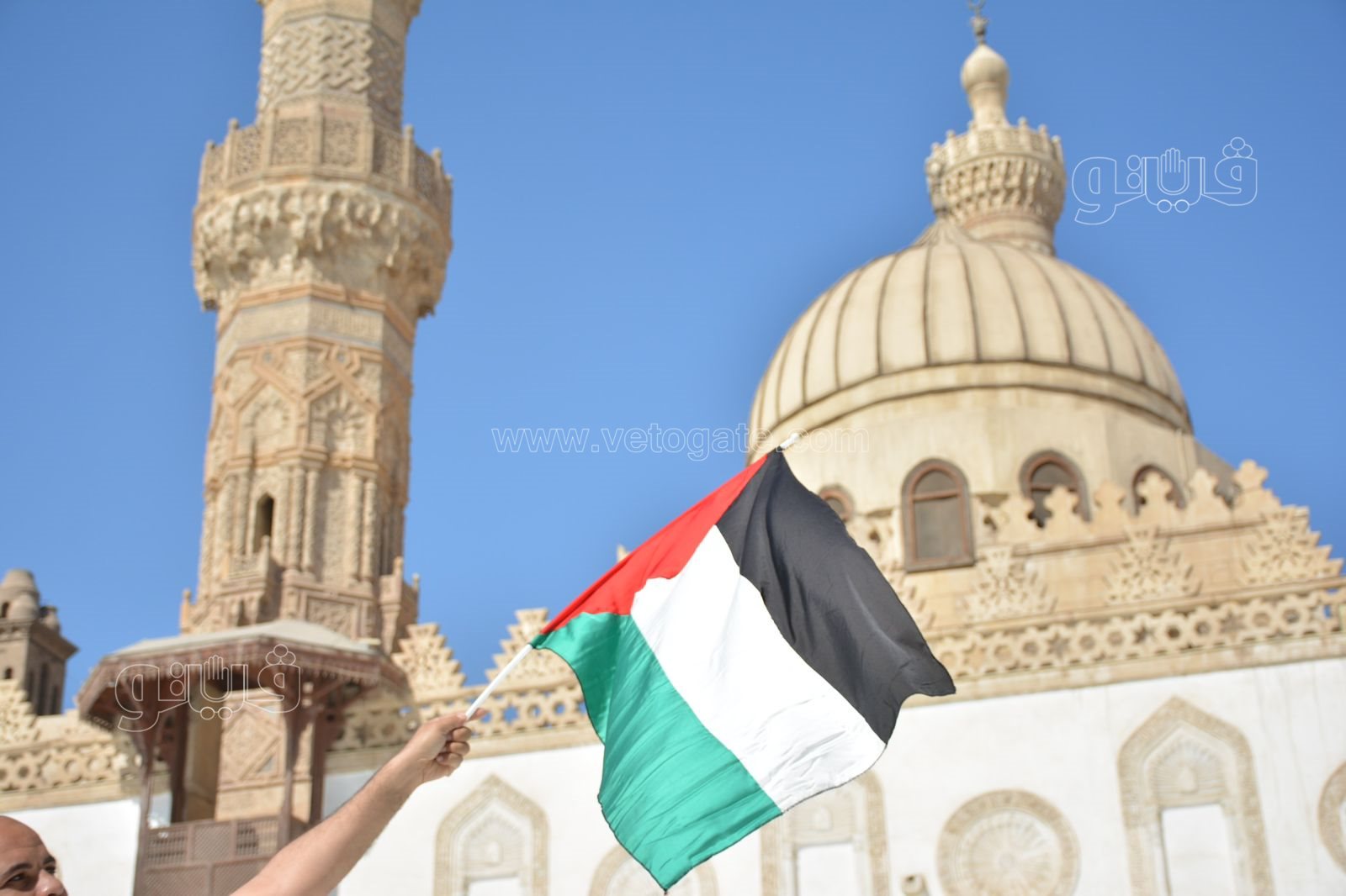 رفع عدد من المواطنين علم فلسطين اليوم قبل بدء صلاة الجمعة بساحة جامع الأزهر، اليوم الموافق 20 أكتوبر تضامنًا مع القضية الفلسطينية وتنديدًا لأفعال العدوان الإسرائيلي الغاشم على الأراضي المحتلة.