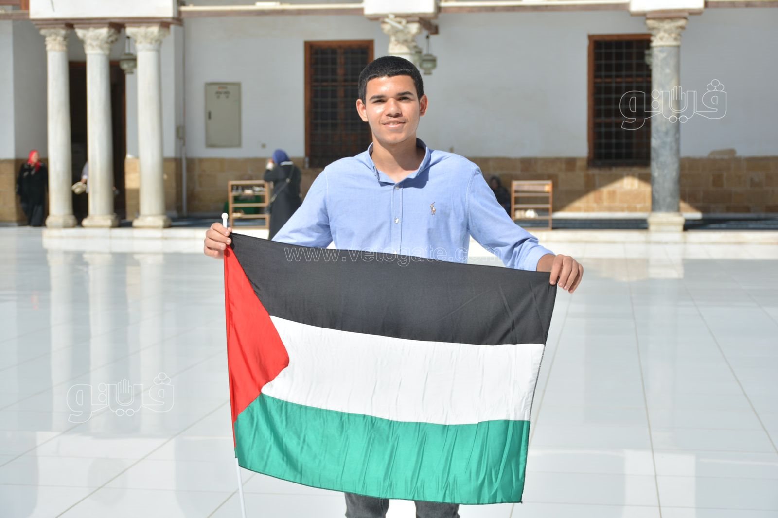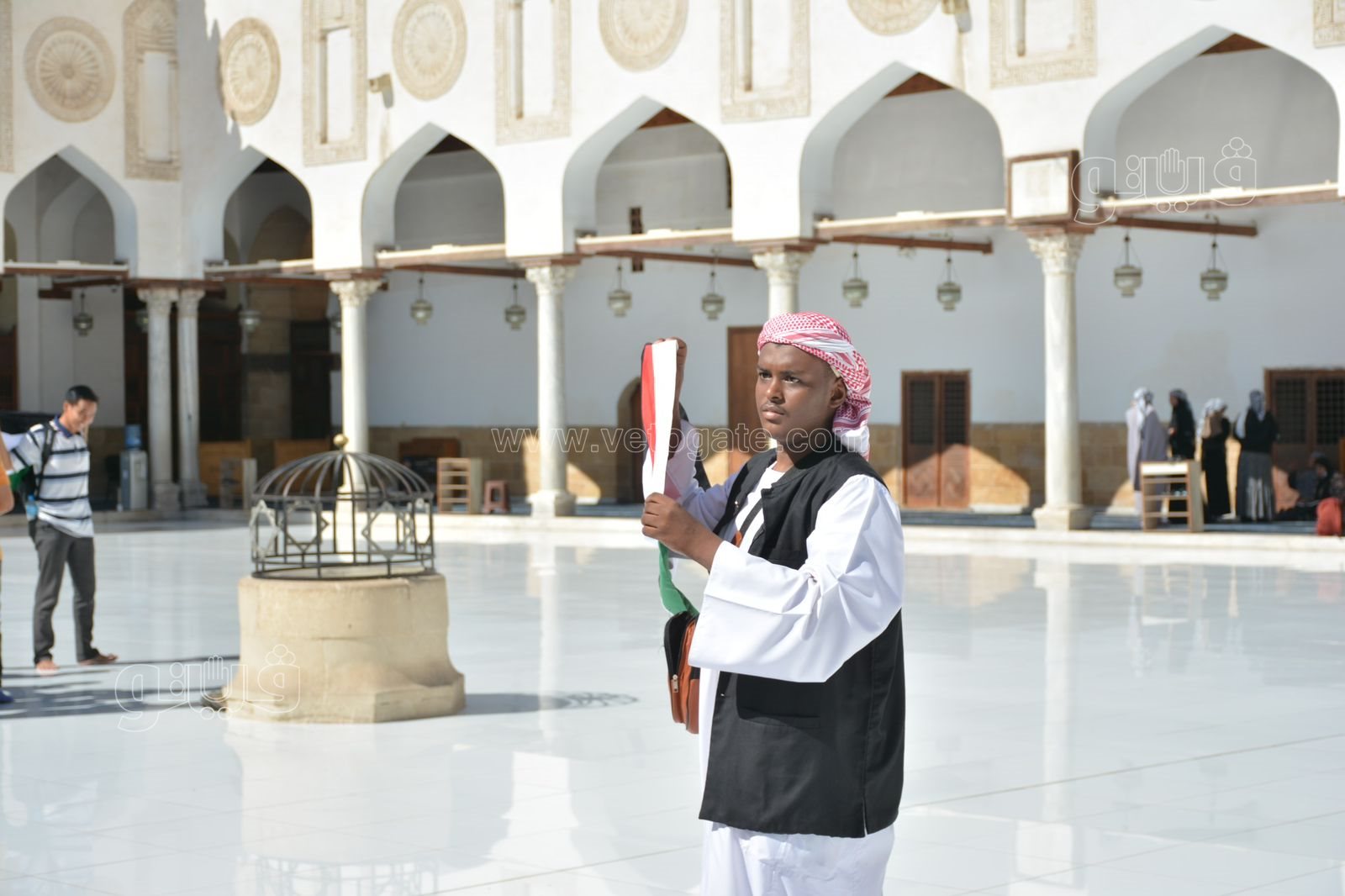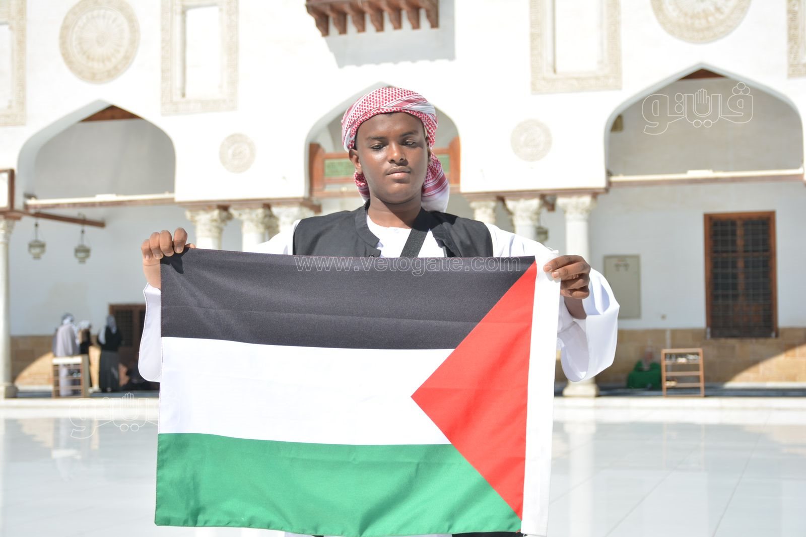 رفع عدد من المواطنين علم فلسطين اليوم قبل بدء صلاة الجمعة بساحة جامع الأزهر، اليوم الموافق 20 أكتوبر تضامنًا مع القضية الفلسطينية وتنديدًا لأفعال العدوان الإسرائيلي الغاشم على الأراضي المحتلة.