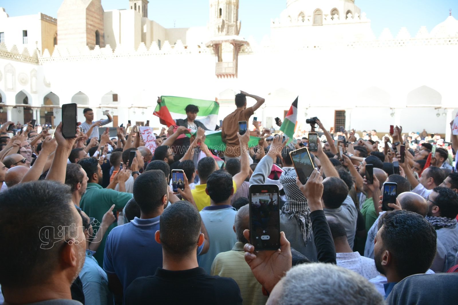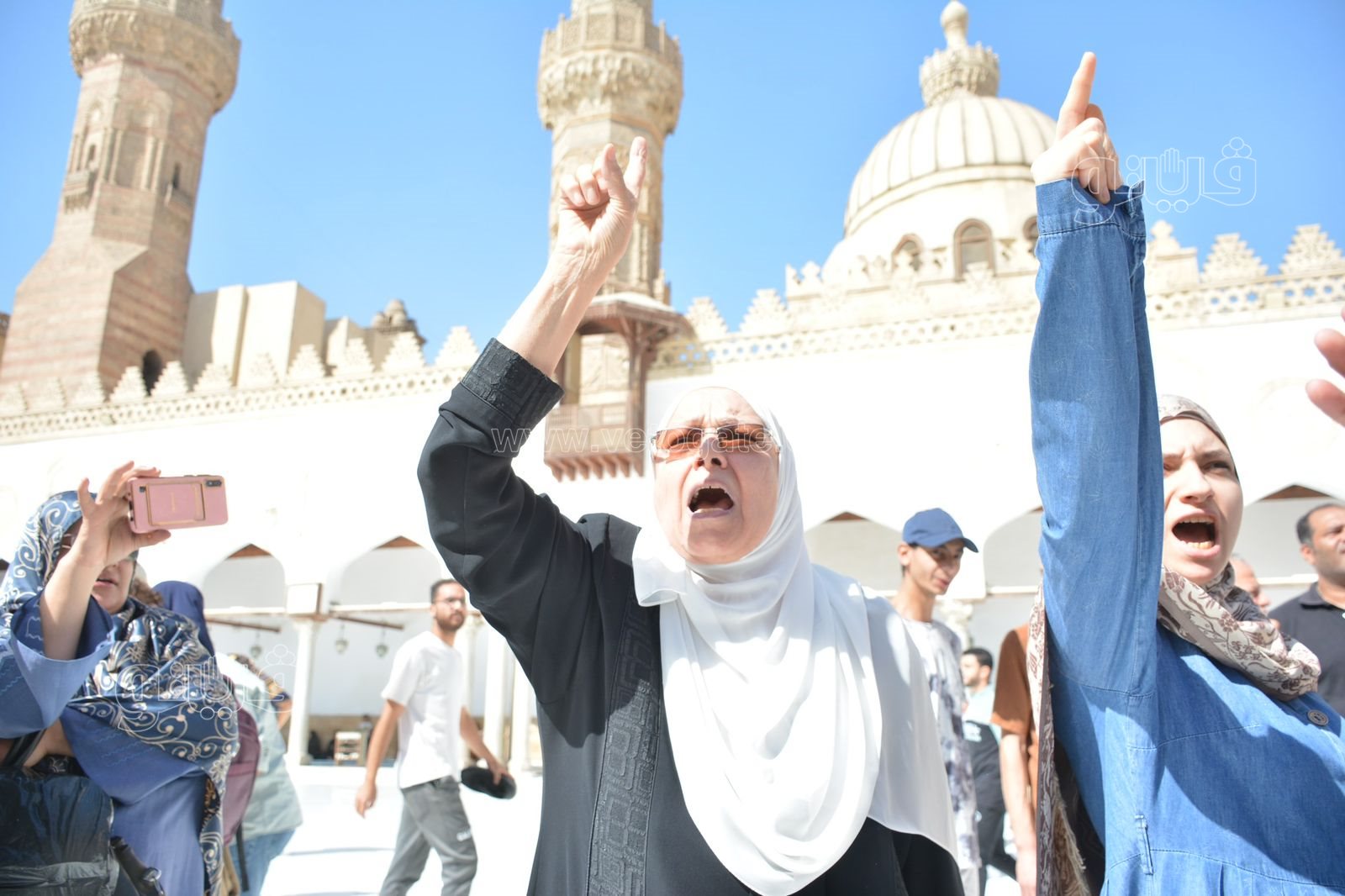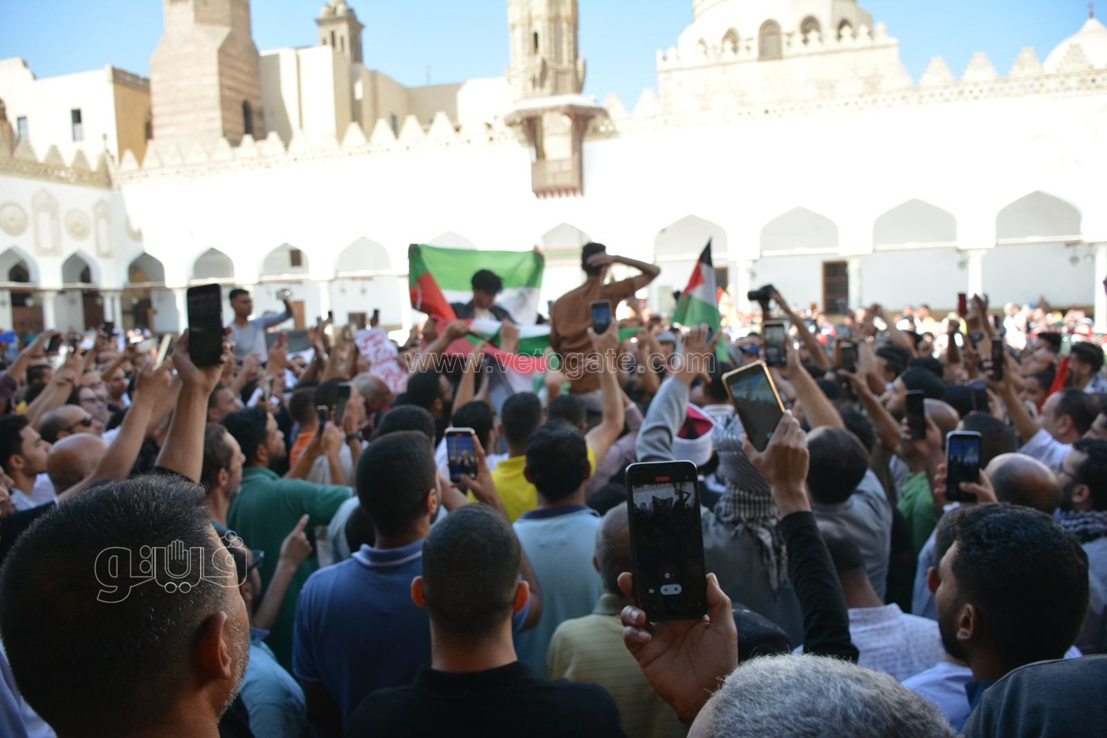 هتافات منددة بمجازر الاحتلال الإسرائيلي أمام جامع الأزهر قبل صلاة الجمعة (فيديو وصور)