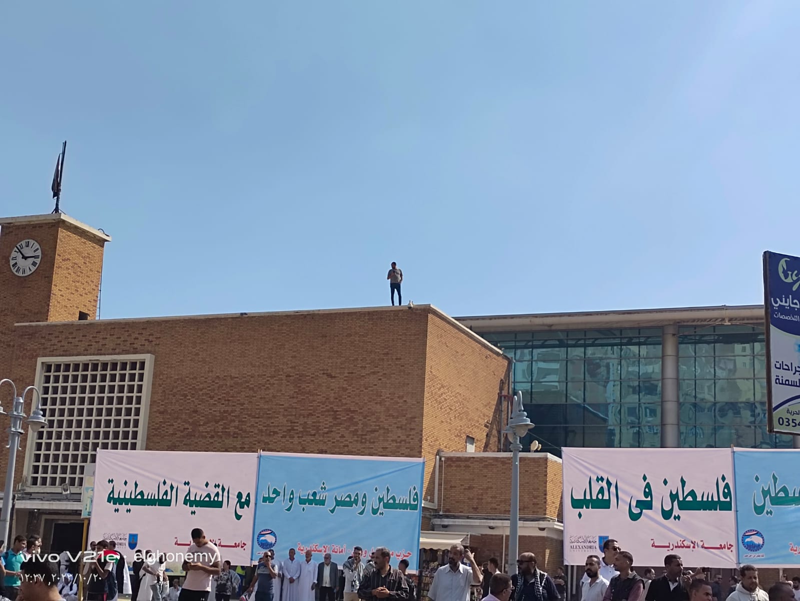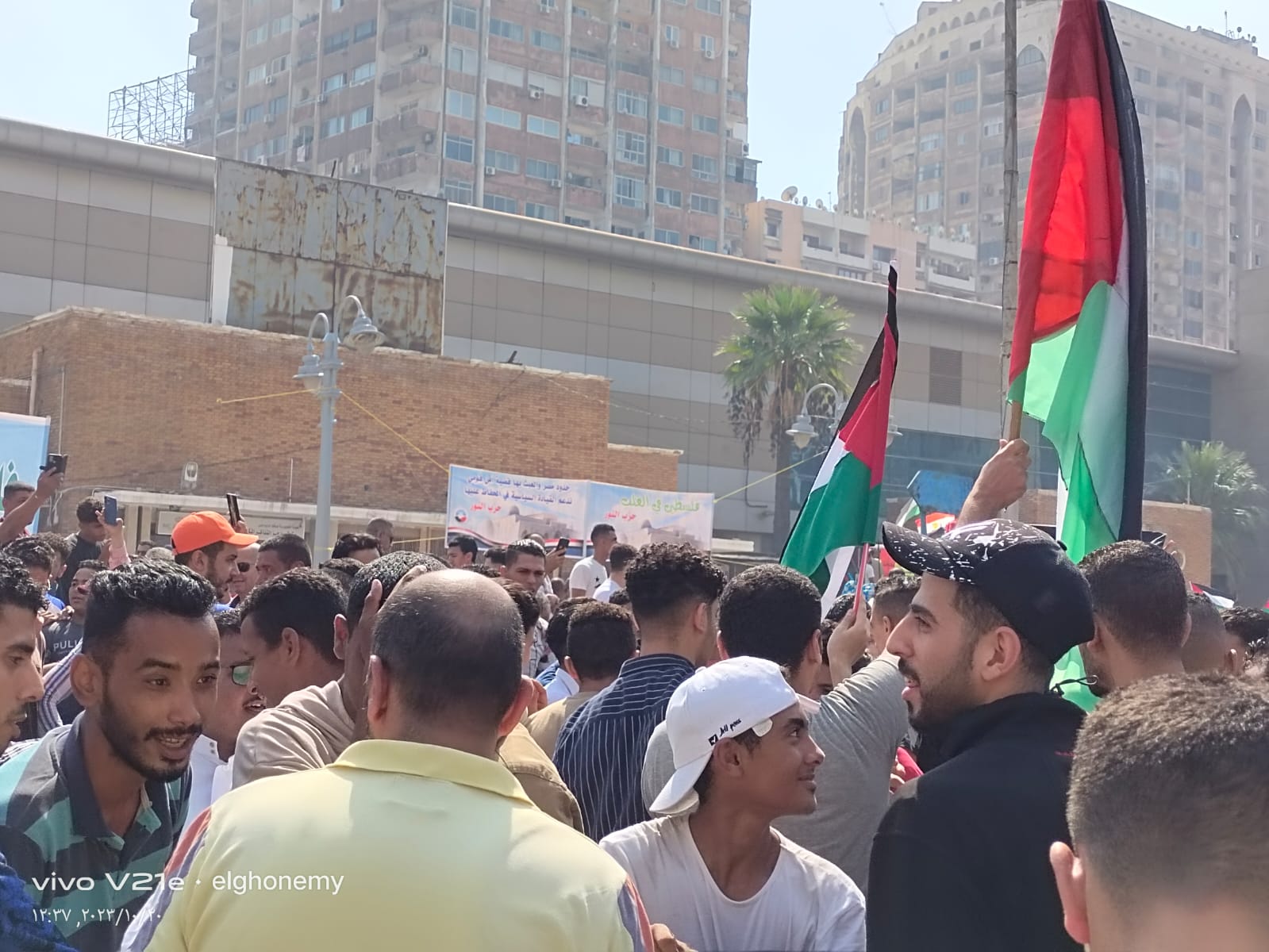 تجمع المئات من المتظاهرين بميدان سيدي جابر دعما للقضية الفلسطينية (فيديو وصور)