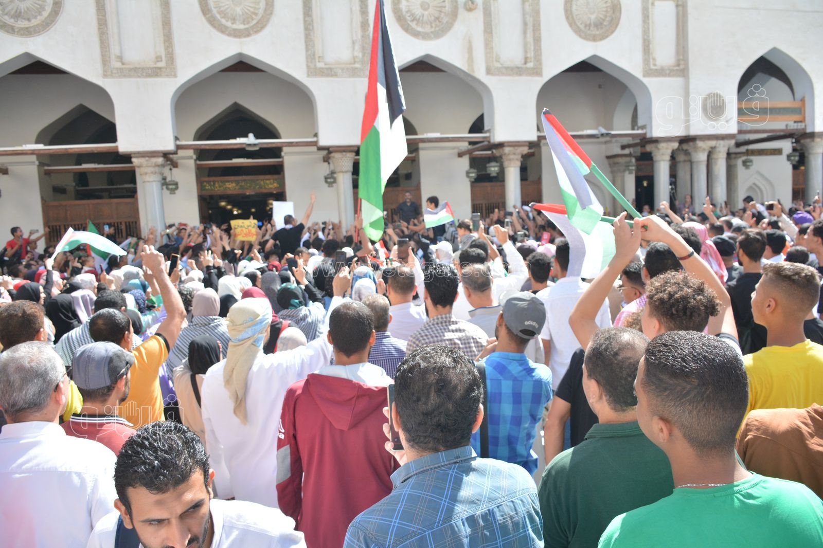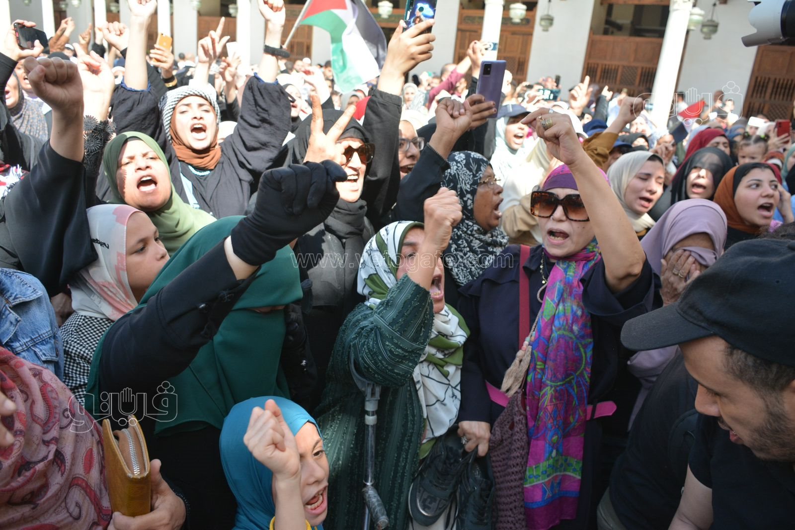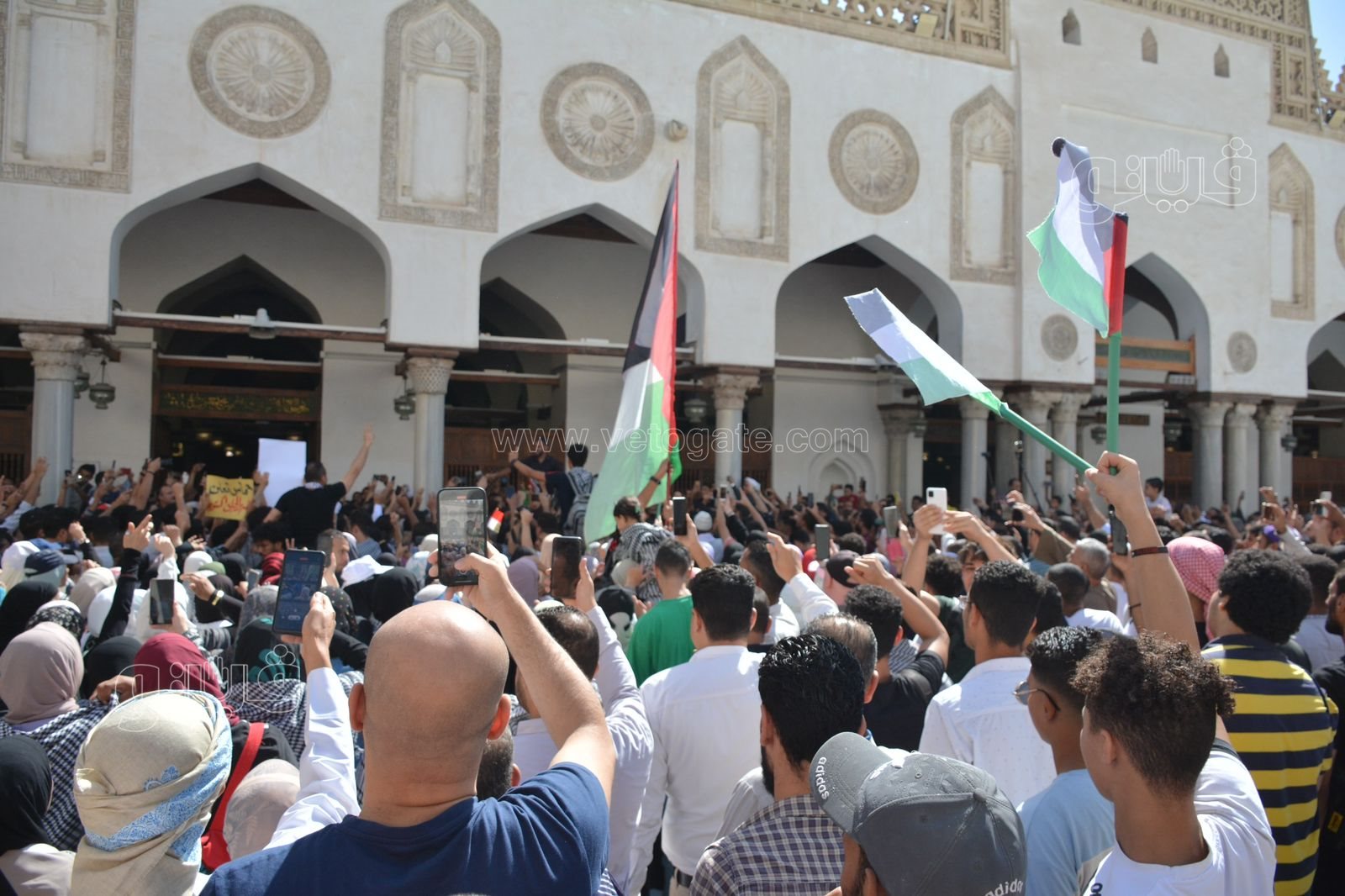 هتافات ودموع، لقطات مؤثرة للمتظاهرين دعما لغزة داخل الجامع الأزهر (صور)
