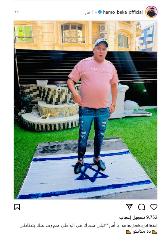نشر مطرب المهرجانات حمو بيكا، صورة عبر حسابه على موقع الصور الشهير “انستجرام”، والتي ظهر فيها، وهو واقفًا بقدمه على علم إسرائيل.