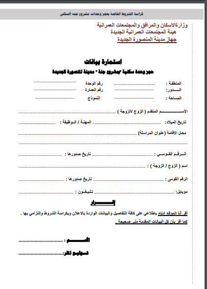 وحددت الوزارة قيمة مقدمات حجز شقق الطرح الجديد وأنظمة السداد.