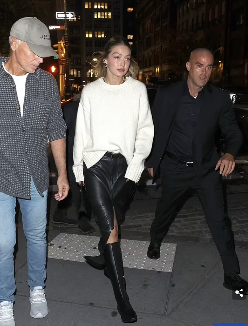 جيجي حديد، ظهرت عارضة الأزياء الأمريكية الجنسية، فلسطينية الأصل، جيجي حديد مساء أمس في مدينة نيويورك، وسط حراسة مشددة، أثناء توجهها إلى الافتتاح الكبير لمتجر علامتها التجارية للملابس Guest In Residence.