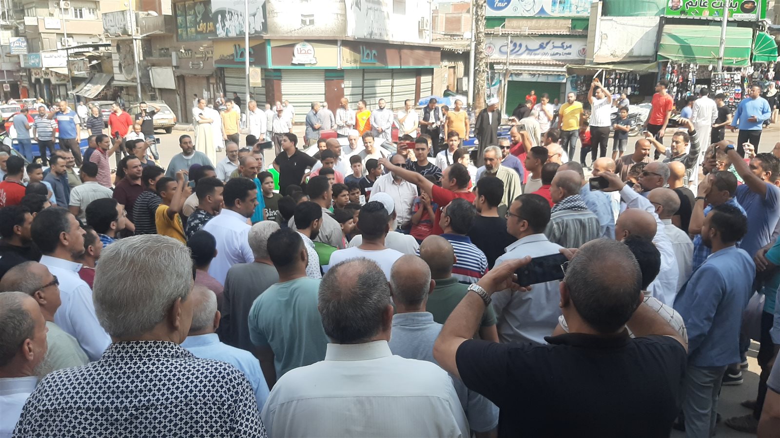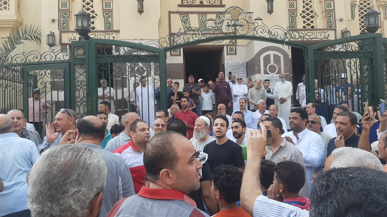 علت الأصوات المتظاهرين عقب خروج المصلين من المسجد مرددين الهتافات الغاضبة من الكيان الإسرائيلي منها بنعاديكي يا إسرائيل، بروح بالدم نفديك يا أقصى، تسقط تسقط إسرائيل".
