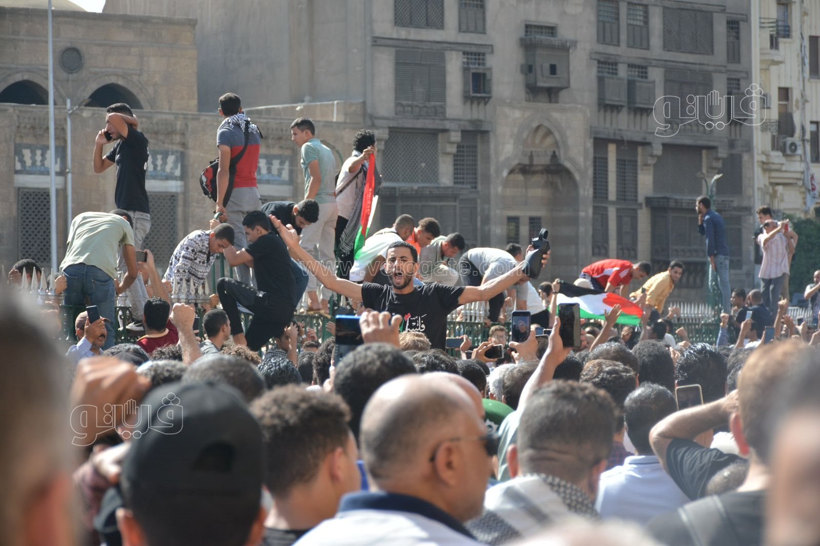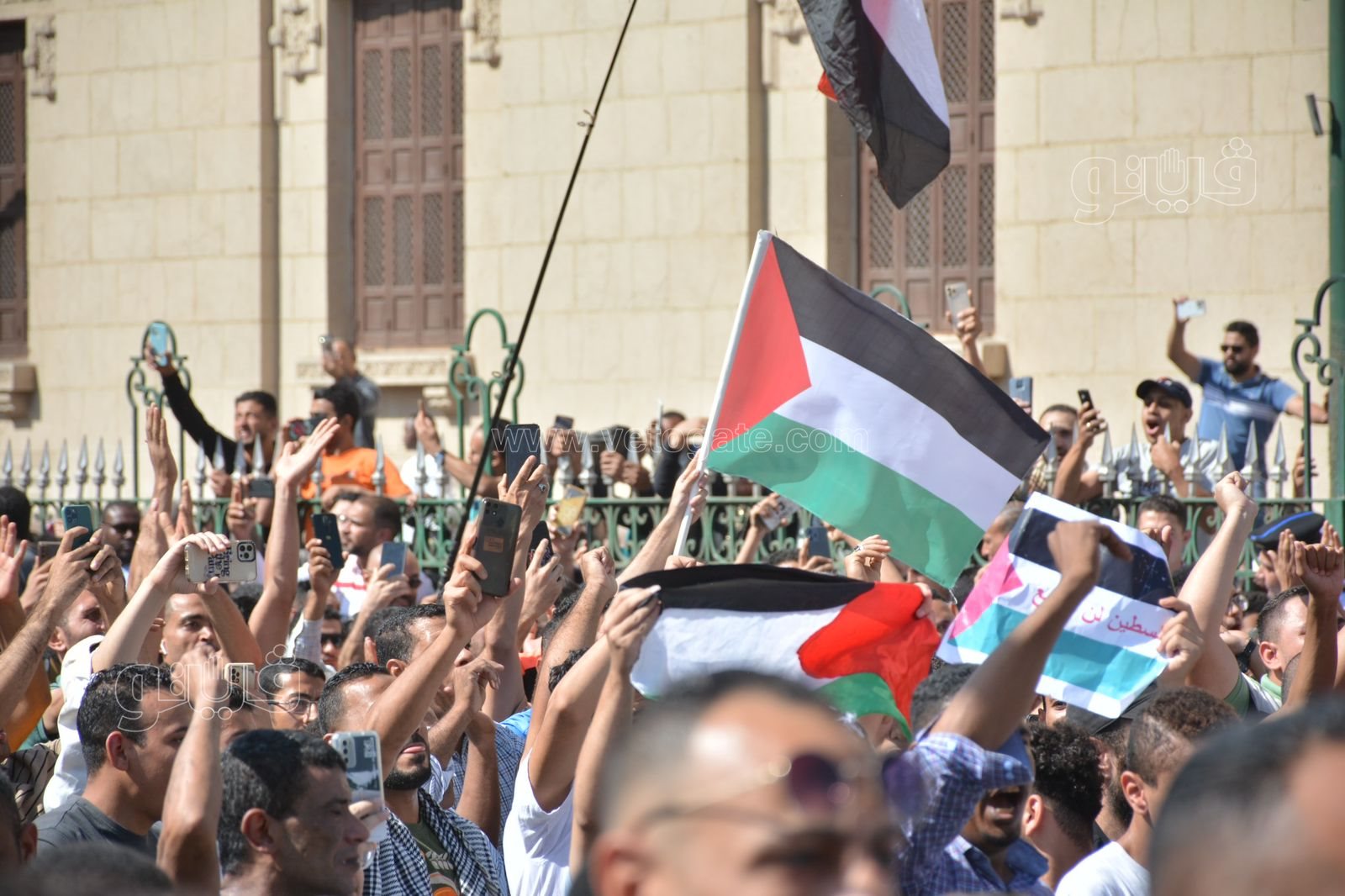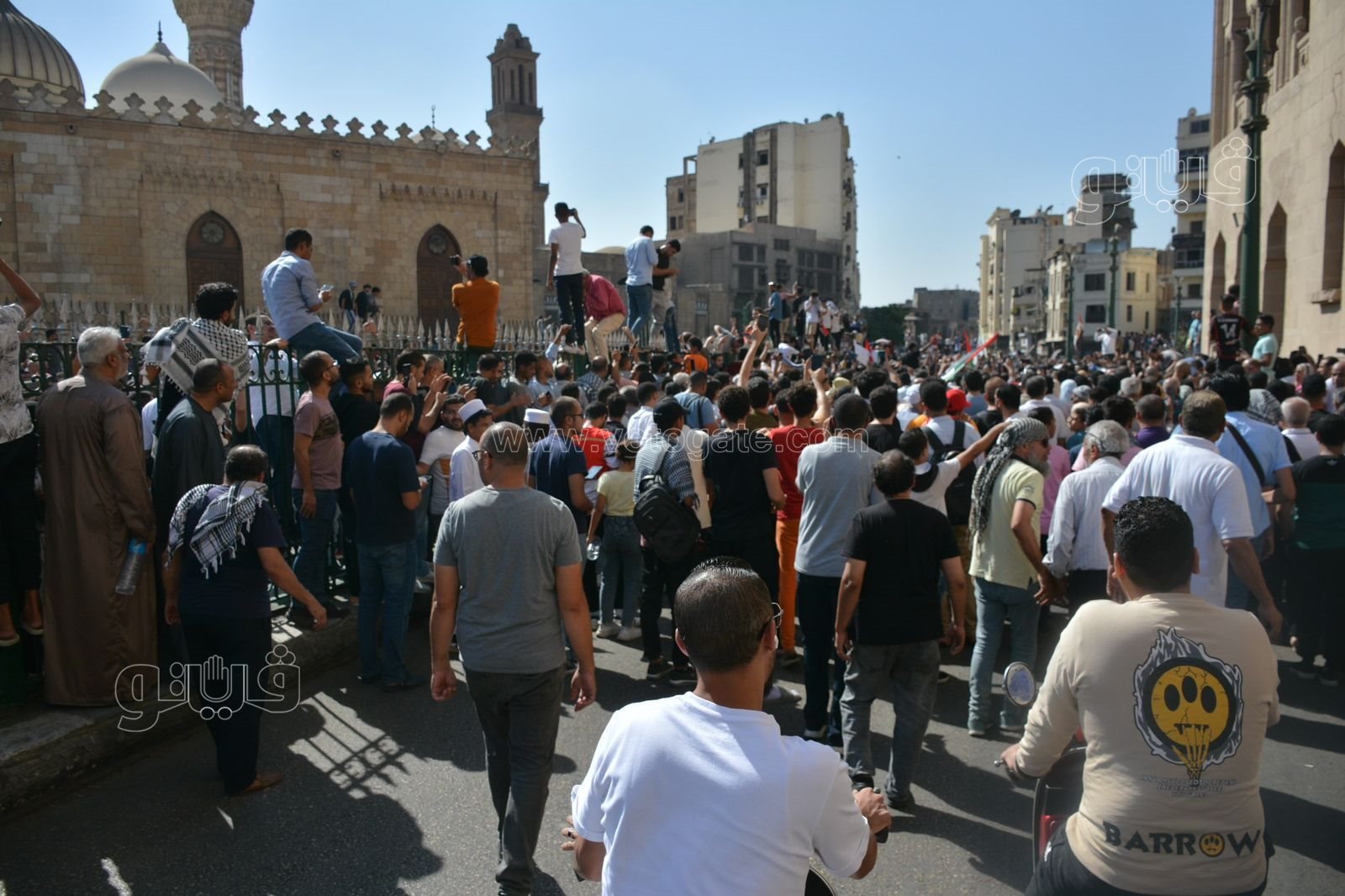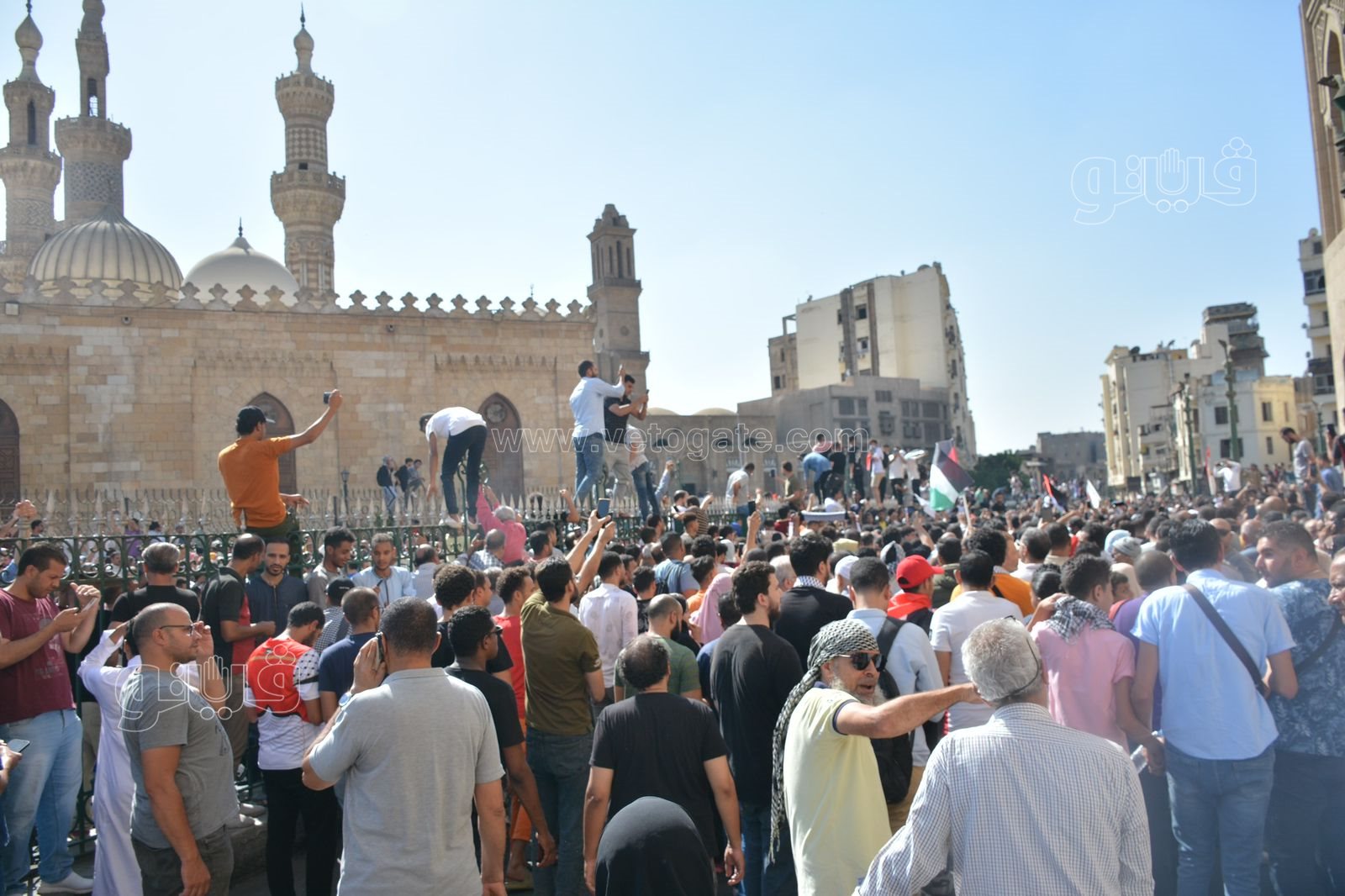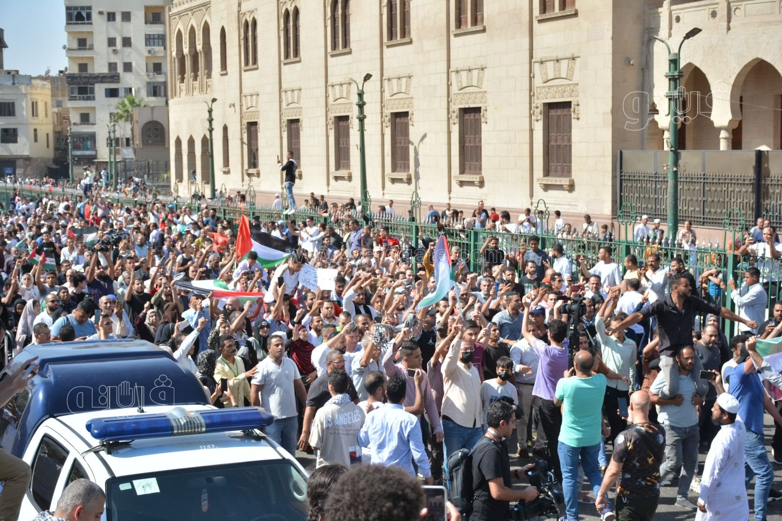 أمام جامع الأزهر، تظاهر آلاف المواطنين دعما لفلسطين (فيديو وصور)